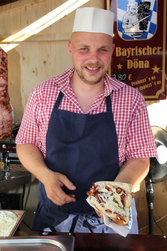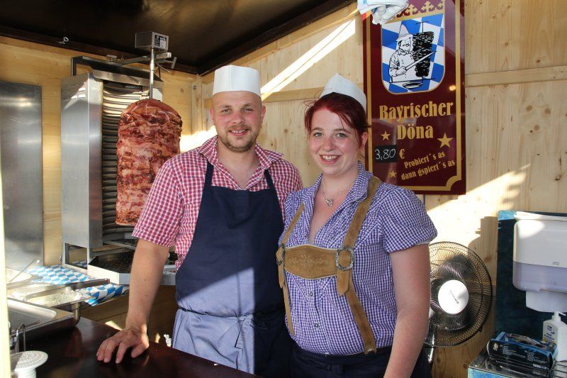 Und während nun die Bedienungen alle Hände voll zu tun hatten, mit den ersten Maßen nicht nur auf wunderschöne Tage, sondern auch auf die lange Freundschaft angestoßen wurde, strömten auch viele Wolnzacher auf die Wies'n. Und während sich die Kleinen auf Schiffschaukel und Autoscooter freuten, ging andere auf die Suche nach Schmankerl, die es nur am Volksfest gibt. Der Blick fiel in diesem Zuge schnell auf einen kleinen Stand. „Bayerischer Döna“ stand dort. Viele wollten diese neue Spezialität schon am ersten Tag probieren. Und so viel kann man sagen. Ein Bayrischer Döner passt zur Wolzacher Wies'n. So kann man sich nun auf 10 schöne Tage Volksfest freuen., einfach gemeinsam feiern und bei hoffentlich schönen Temperaturen die lauen Sommerabende genießen.