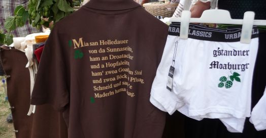 Auf dem Parkplatz gegenüber des Schlosses hatten die vielen Aussteller genügend Platz, um alle ihre kulinarischen, künstlerischen, praktischen oder modischen Glanzstücke an den Mann zu bringen. Nicht nur für die Hopfenliebhaber gab es elegante Keramik, Bild und Flechtarbeiten, sondern auch für solche, die schon lange nach dem passenden Accessoire für ihre Tracht suchen.