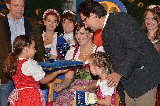 Musikalisch umrahmt wurde die Feier von den Holledauer Musikanten. Zahlreiche Ehrengäste aus Politik und Landwirtschaft, darunter auch gut zwei Dutzend Gastköniginnen, ließen sich das Zeremoniell nicht entgehen.