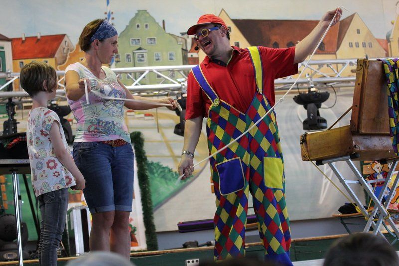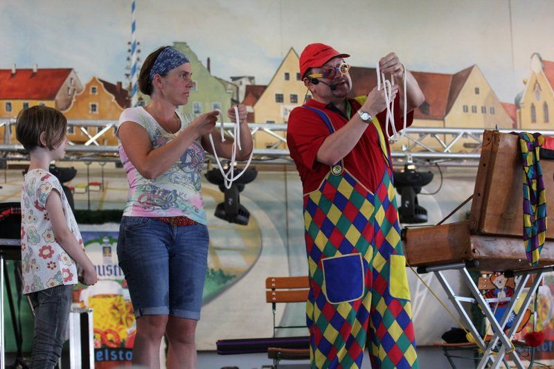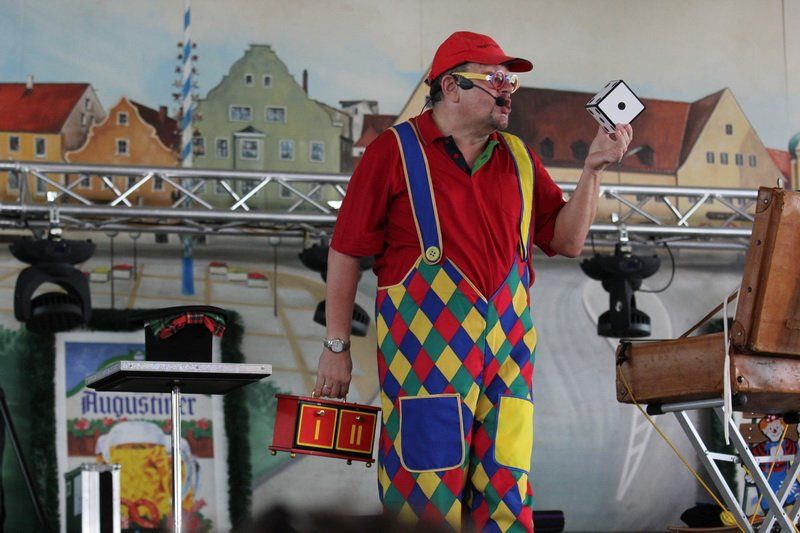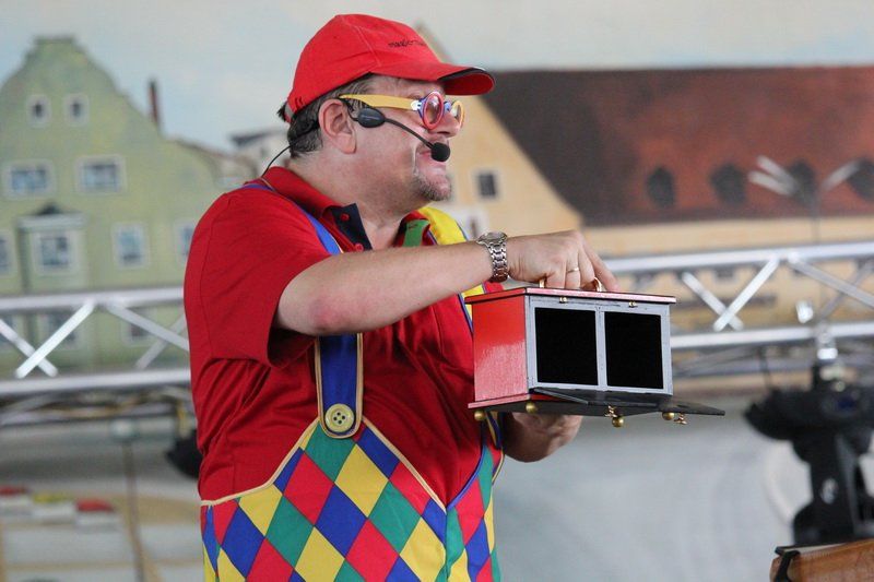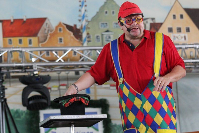 Und während draußen das Geschäft brummte, sorgte drinnen Zauberer Kunterbunt für fröhliche Stimmung. „Ich sehe schon heute habe ich wieder ein besonders kritisches Publikum“, doch schon nach wenigen Minuten war das Eis gebrochen und die Kleinen staunten nicht schlecht über die Tricks, die er mitgebracht hatte. Dass dabei nicht immer alles so funktionierte, wie sich der Zauberer das dachte, das quittierte das kleine Publikum mit einem Lachen. „In Wolnzach auf der Bühne zu stehen ist immer etwas Besonderes“ so Helmut Zweck. Auch die Kinder waren am Ende begeistert. Ein rundum gelungener Nachmittag.