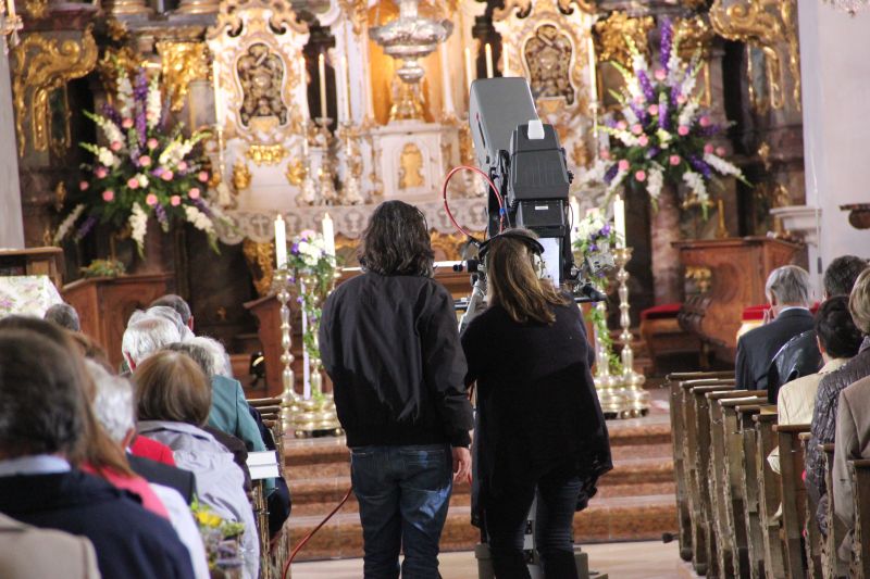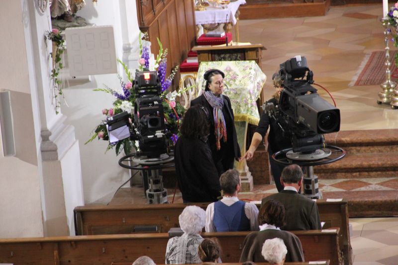 "Wenn die Kamera an Ihnen vorbeifährt, dann lassen Sie sie bitte einfach vorbeifahren." wurde die Kirchengemeinde schon vor Beginn des Festgottesdienstes ob der ungewohnten Anwesenheit eines Fernsehteams vorgewarnt. Es sei und bleibe ein Festgottesdienst, auch wenn Technik und Kabel zunächst befremdlich wirken mögen.