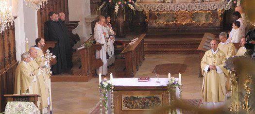 Zu einem Festgottesdienst luden die Benediktinermönche am Mariä Himmelfahrtstag in die Scheyrer Basilika ein. Der Bayerische Rundfunk hatte sich angesagt und übertrug live in seinem 3. Fernsehprogramm. Anlass neben dem kirchlichen Festtag war die Feierlichkeit anlässlich des 100jährigen Bestehens des Basilikachors Scheyern.