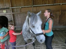 Im Rahmen der Ferienspiele Rudelzhausen lud der Pferdepark Schillinger in Faistenberg interessierte Kinder zu einem Nachmittag rund ums Pferd ein. Marion Gruber erklärte den 12 Kindern zuerst die Theorie, dann gings ans Putzen und Reiten.