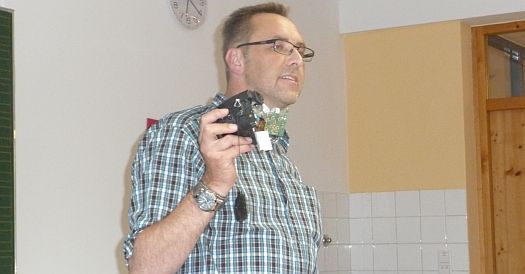 Der Fachmann ging mit den Kindern auch den Aufbau einer Kamera durch und erläuterte sämtliche Einstellungen und Funktionen der modernen Digitalkamera. Ganz nebenbei verriet er nützliche Tipps, so z.B. dass man die normale Akkudauer nahezu verdoppeln kann, wenn man den Bildschirm ausschaltet und stattdessen über den Sucher fotografiert.