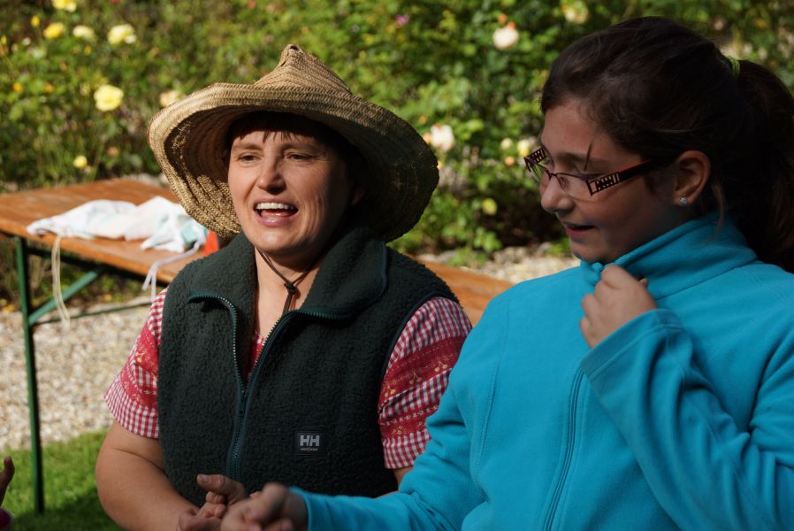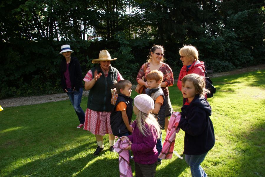 Zusammen mit Hannelore Zierer und Maria Schlögl gingen sie auf Schatzsuche, die sich auf dem weitläufigen Gelände in und um den Schlossgarten erstreckte.
