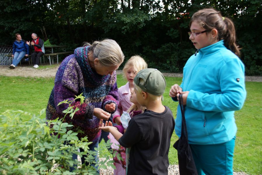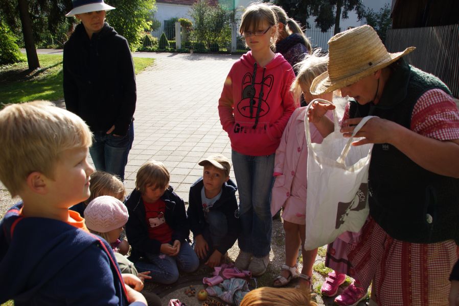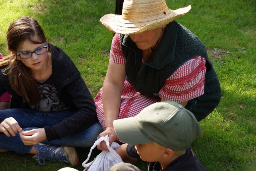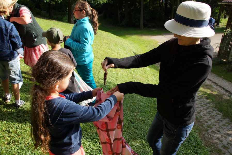 Maria Schlögl aus Schweinbach, die ihre Naturbegeisterung bei verschiedensten Anlässen an den „Mann“ bringt, zeigte den Mädchen und Buben auch, was sie mit ihren gesammelten Schätzen alles anfangen können.