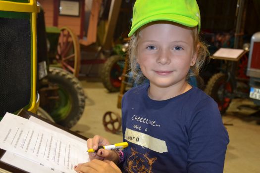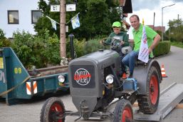 Die Kinder durften dann mit drei alten Traktoren aus der Sammlung auf einem Rundkurs auf dem gepflasterten Hof von Helmut Schneider unter Aufsicht der Agrar-Oldies fahren. Es war Buben und Mädchen anzumerken, dass sie begeistert waren. Besonders schwierig war es für sie, über eine von den Agrar-Oldies gebaute, einfache Wippe zu fahren. Dazu mussten sie genau zielen, um in die Spur zu kommen und aufpassen, dass sie beim Kippen der Wippe nicht aus der Spur kamen. Doch damit nicht genug, sie konnten sich auch alle an einem Quiz beteiligen, das immerhin 15 knifflige Fragen beinhaltete, die alle mit dem Museum und der ausgestellten Technik zu tun hatten. Zum Lohn gab es für alle zum Schluss eine ausgiebige Brotzeit.