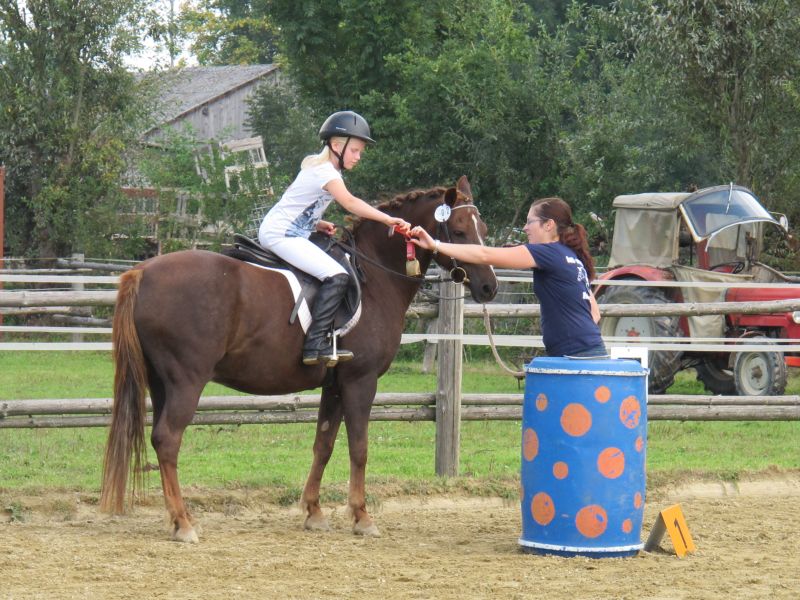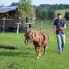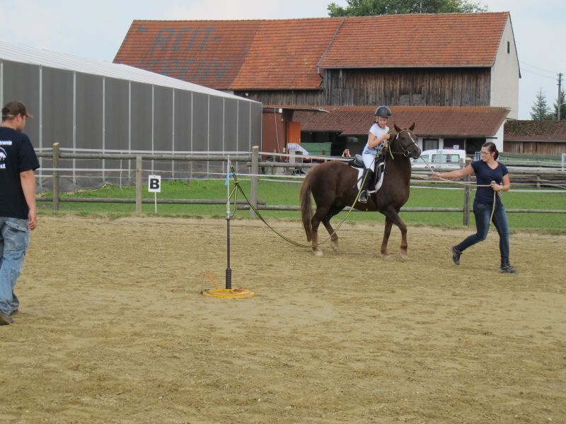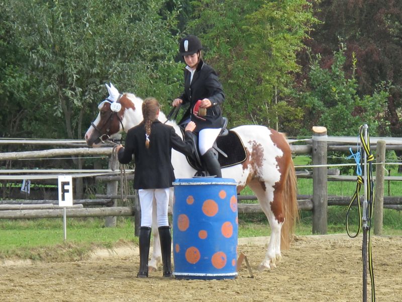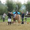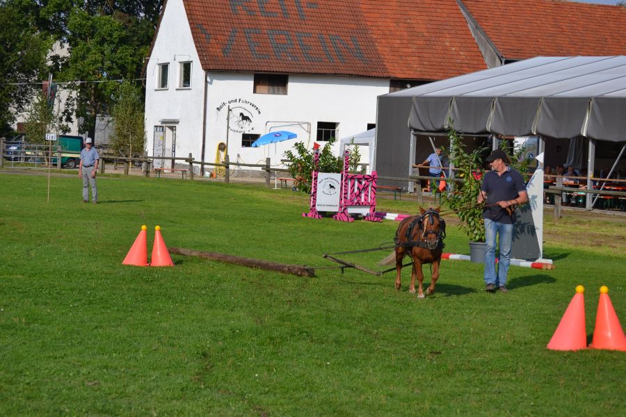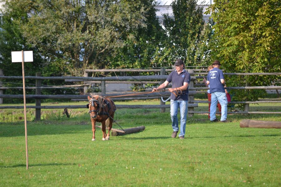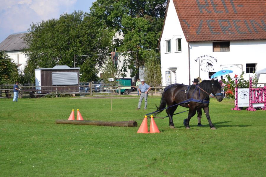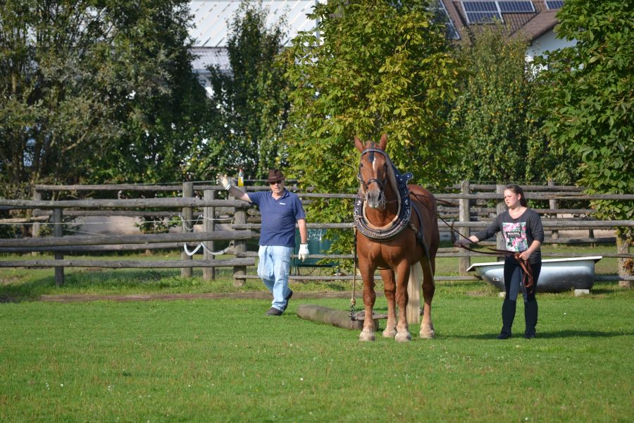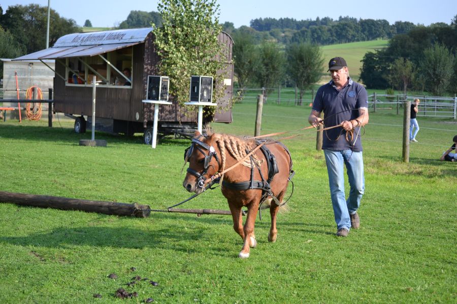 Die Zeit, dass Pferde als Arbeitstiere herhalten müssen, ist zwar schon lange vorbei, trotz allem ist das Schwachholzziehen immer noch Prüfungsbestandteil. Für die großen Tiere war das Ziehen des Stammes weniger ein Problem, als Fehlerlos durch die den Parcours zu kommen. Dagegen war es für die Kleinen schon eine Herausforderung die schwere Last zu ziehen, was die Pferde aber allesamt mit Erfolg meisterten.
