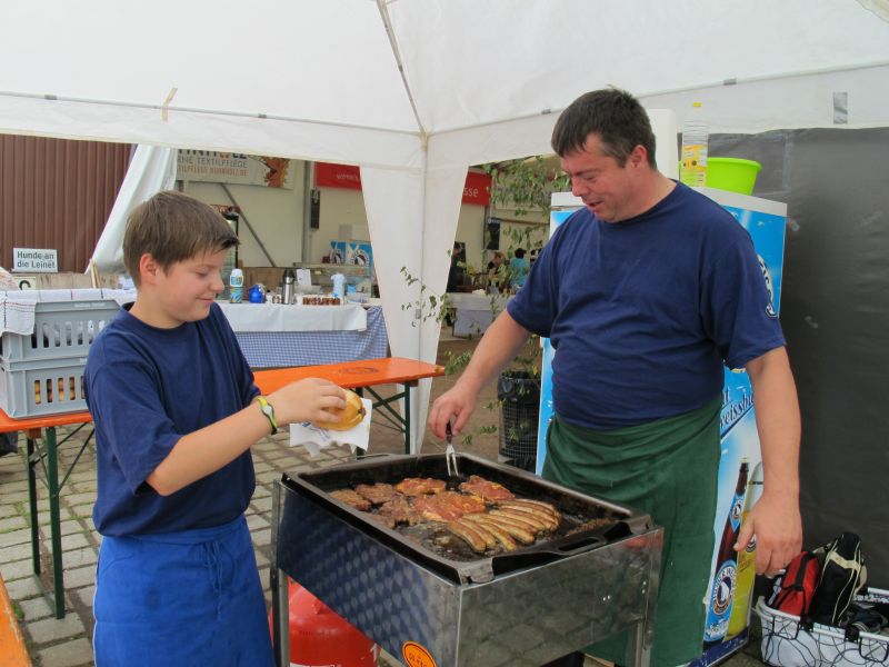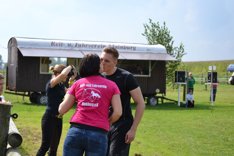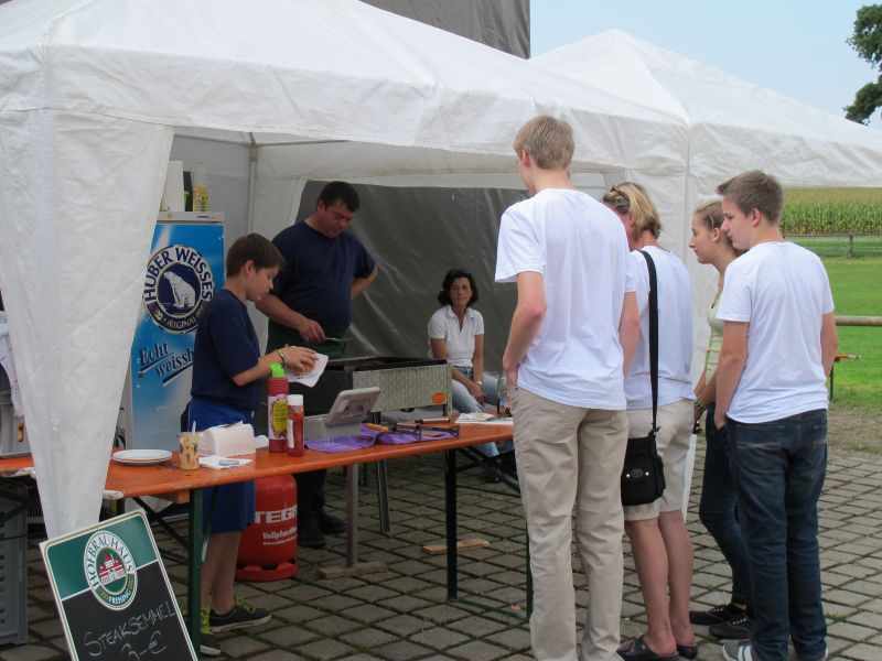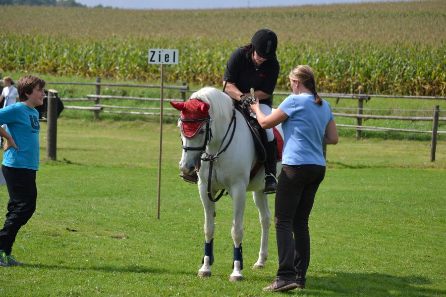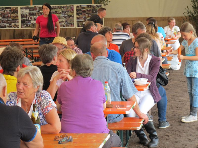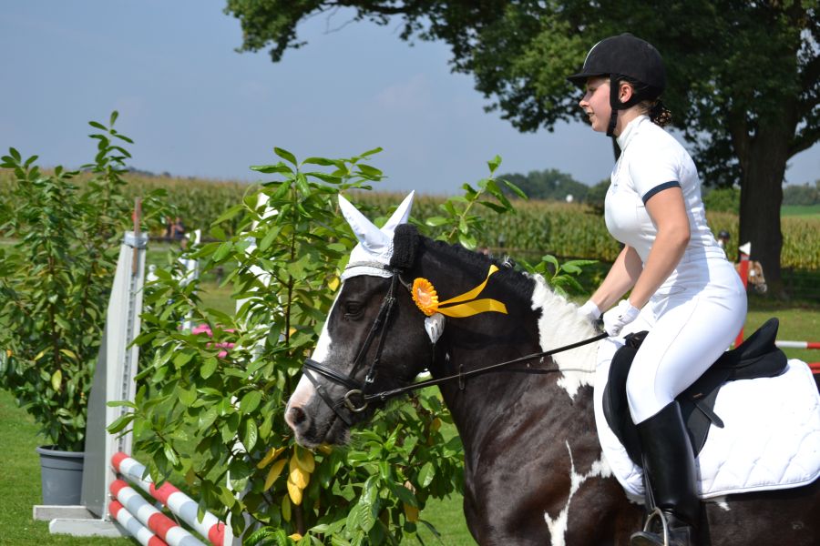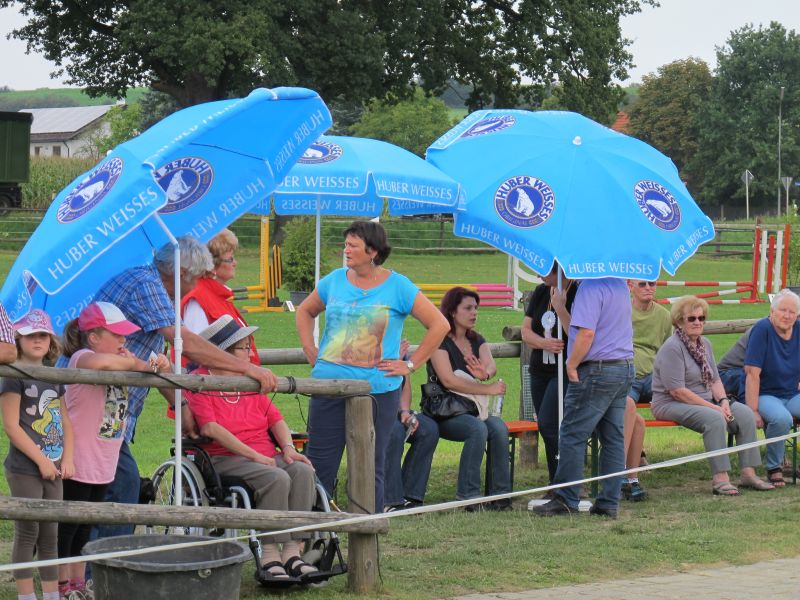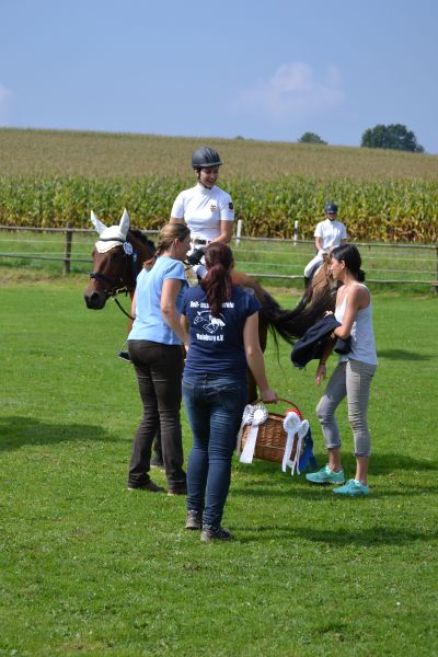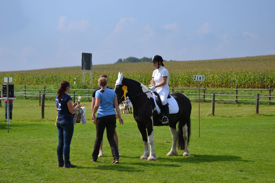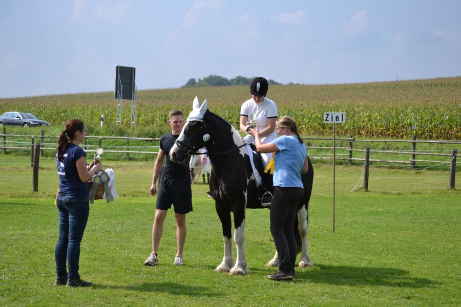Nach jedem Wettbewerb fand sofort im Anschluss die Siegerehrung statt. Die ersten drei Reiter bekamen jeweils einen prächtigen Pokal überreicht und die Pferde eine Schleife ans Geschirr. Für das leibliche Wohl der Zuschauer und Reiter war selbstverständlich auch bestens gesorgt. Im extra aufgestellten Festzelt gab es deftiges vom Grill und ein riesiges Kuchenbuffet, bei dem kräftig zugelangt wurde.