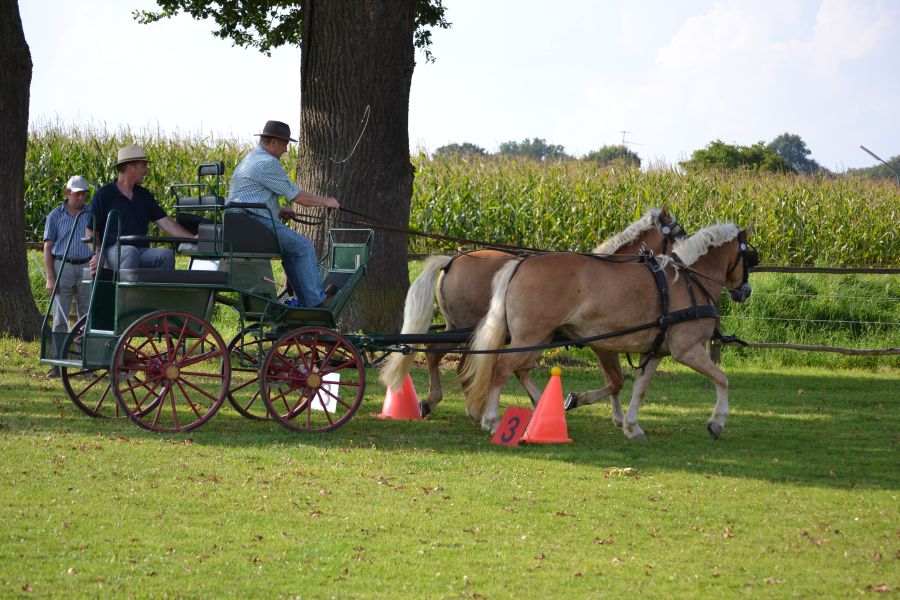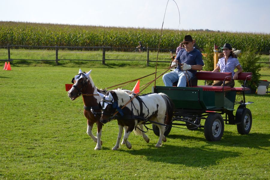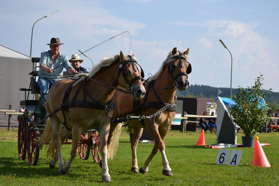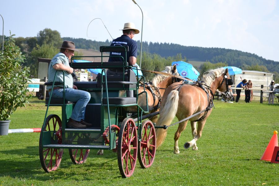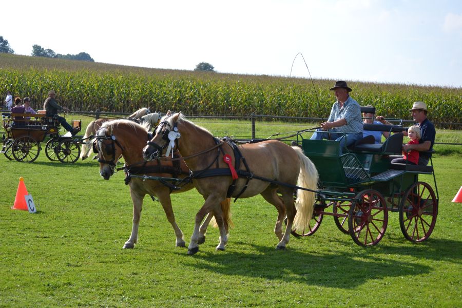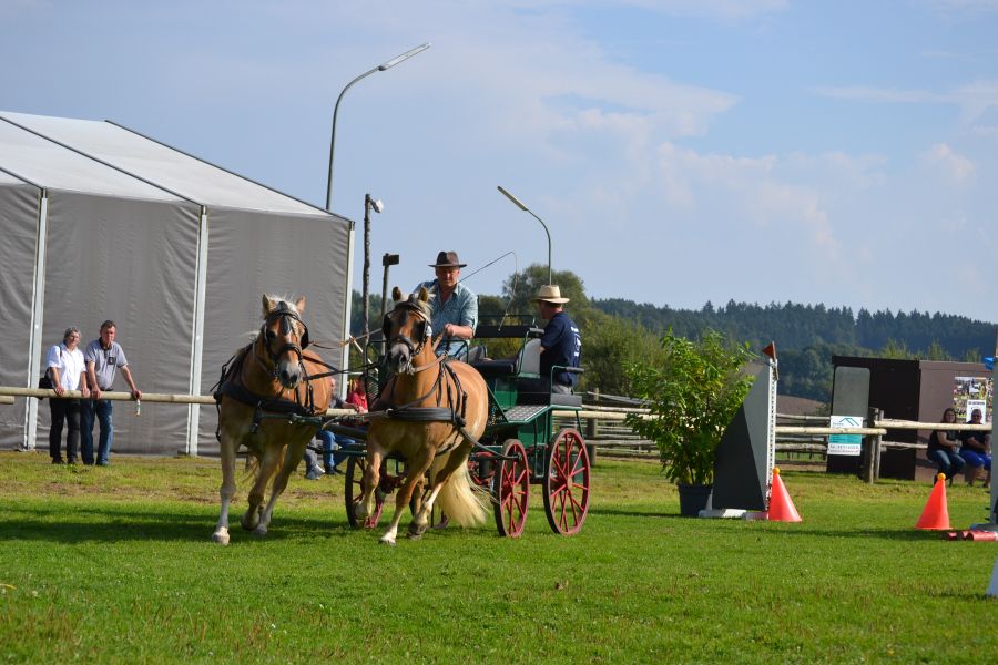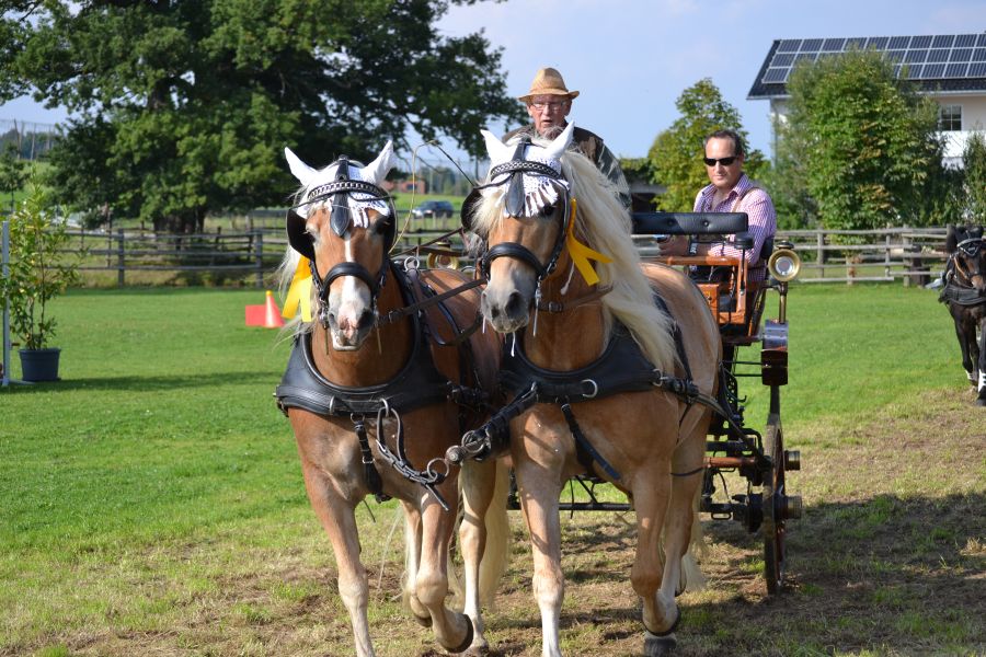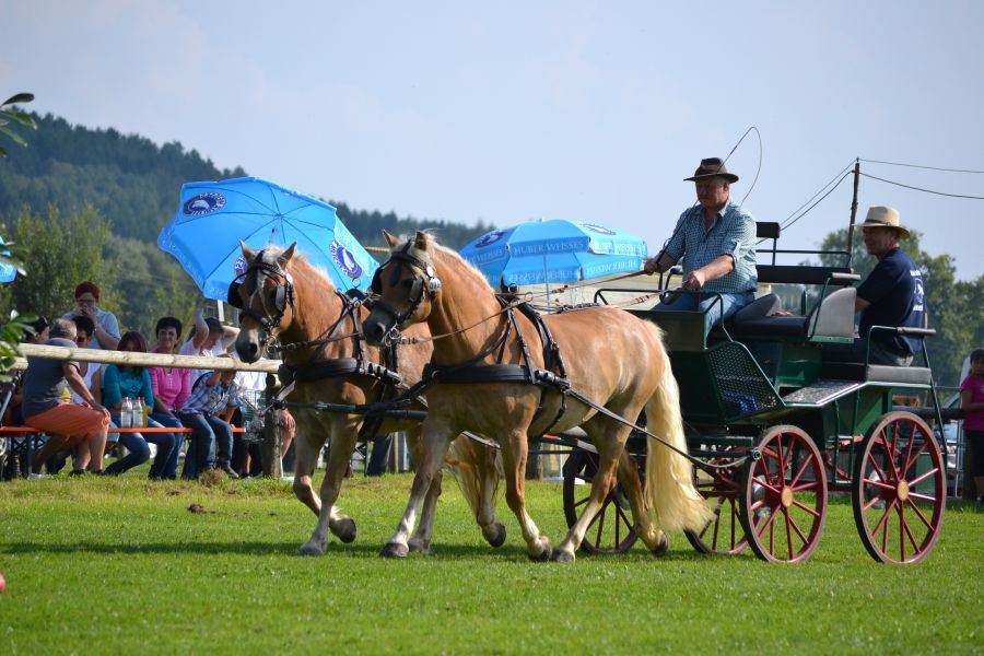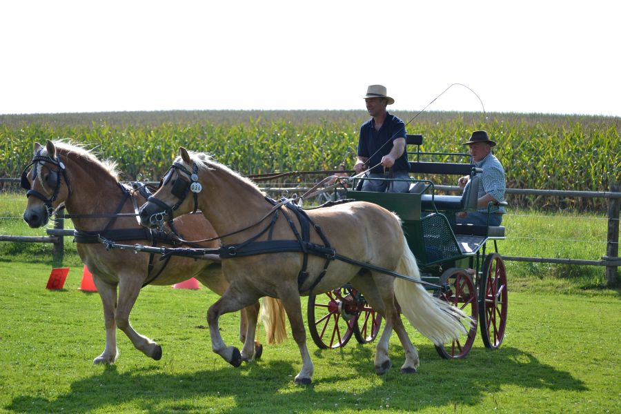 Besonders schön anzuschauen waren am Nachmittag die Ein- und Zweispänner. Pferde, Reiter und Kutschen zeigten sich hier von ihrer besten Seite. Auch bei diesem Wettbewerb gehörte eine große Portion Geschick dazu heil durch alle Hindernisse zu kommen und das am besten so schnell als möglich.