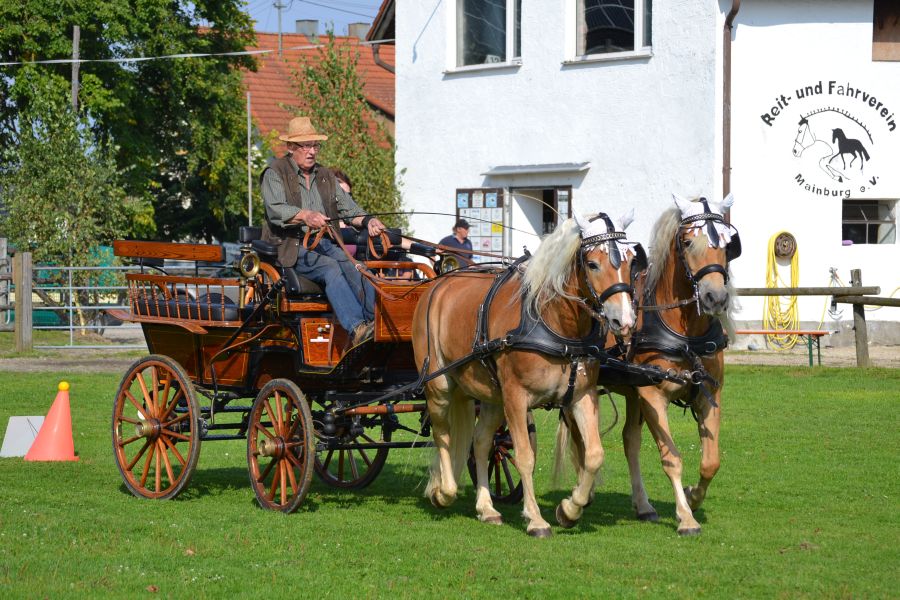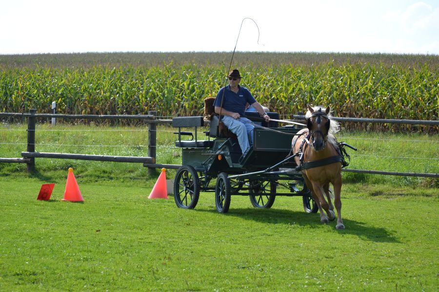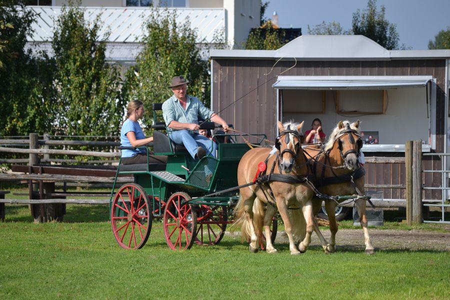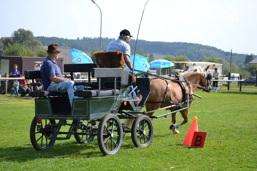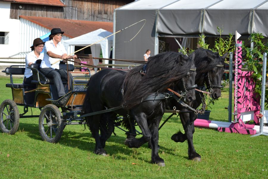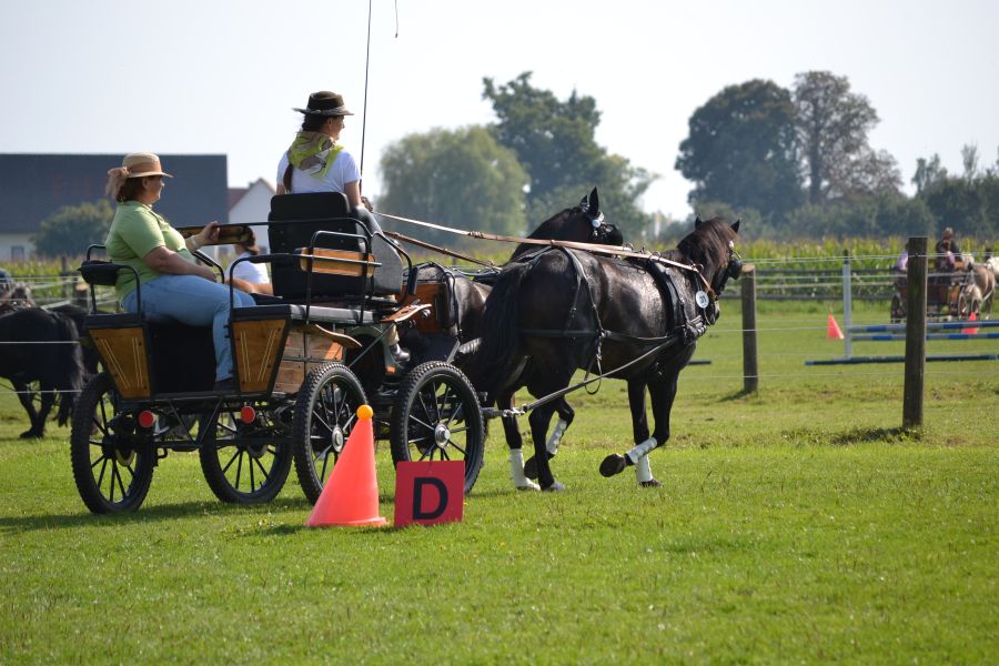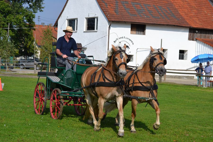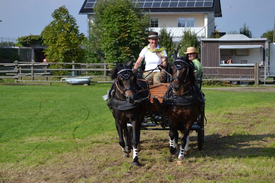 Besonders schön anzuschauen waren am Nachmittag die Ein- und Zweispänner. Pferde, Reiter und Kutschen zeigten sich hier von ihrer besten Seite. Auch bei diesem Wettbewerb gehörte eine große Portion Geschick dazu heil durch alle Hindernisse zu kommen und das am besten so schnell als möglich.