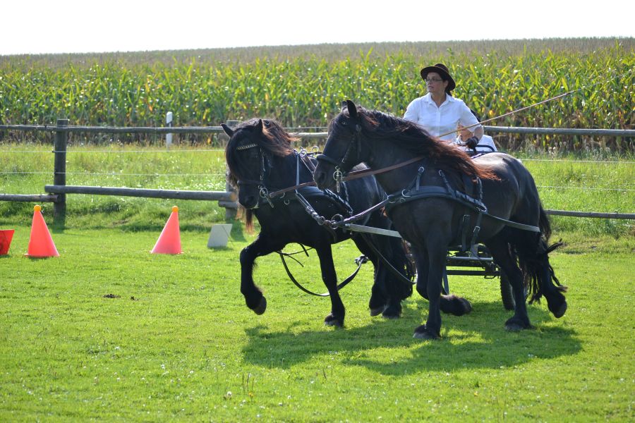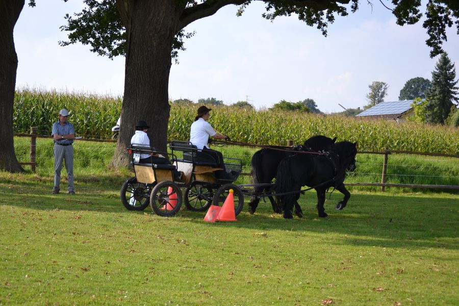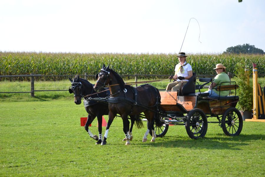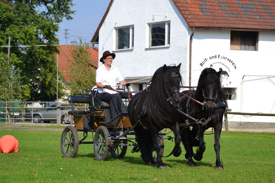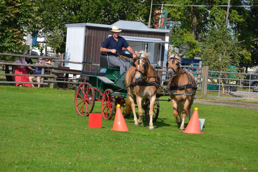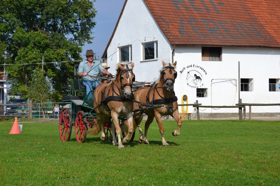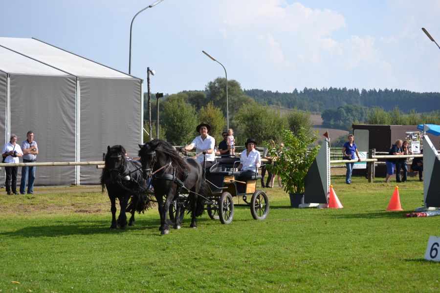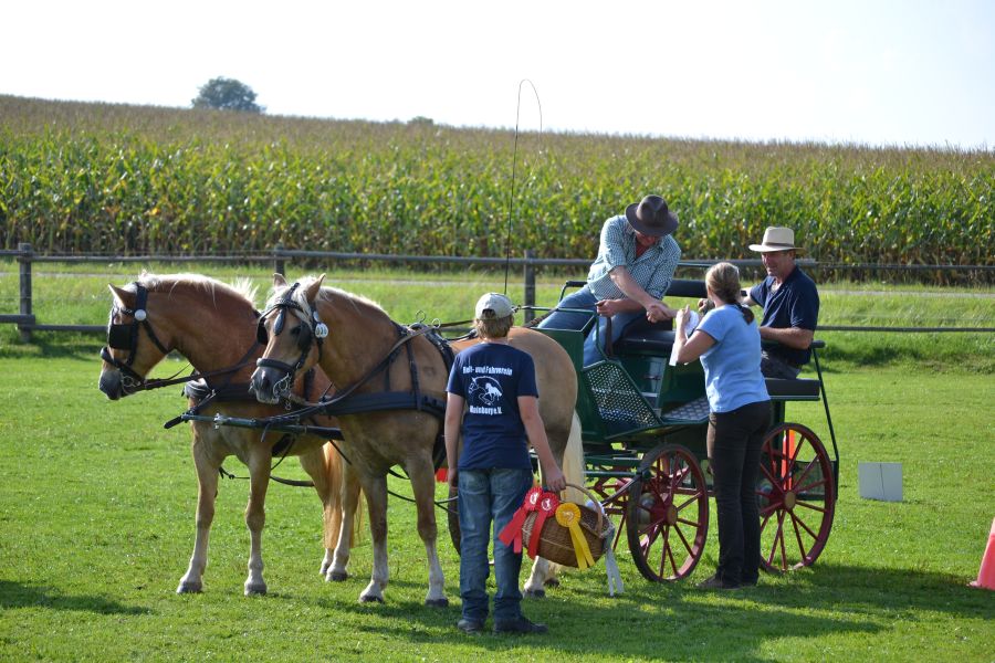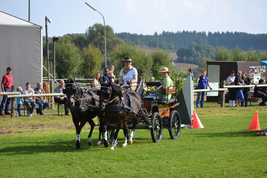 Besonders schön anzuschauen waren am Nachmittag die Ein- und Zweispänner. Pferde, Reiter und Kutschen zeigten sich hier von ihrer besten Seite. Auch bei diesem Wettbewerb gehörte eine große Portion Geschick dazu heil durch alle Hindernisse zu kommen und das am besten so schnell als möglich.