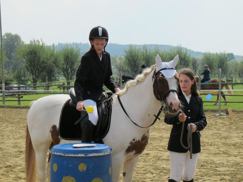 Die Geschicklichkeitswettbewerbe dagegen waren weniger auf Geschwindigkeit ausgelegt, dabei ging es eher um eine ruhige Hand. Nur mit äußerster Konzentration gelang es den Jugendlichen, u.a. einen Plastikball auf einem Löffel zu transportieren oder Hufeisen in einen Reifen zu werfen.