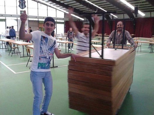 Tatkräftig unterstützt wurden sie bei ihren Vorbereitungsarbeiten von 15 syrischen Asylbewerbern aus der Marktgemeinde, die kurzentschlossen in einer gemeinsamen Aktion die insgesamt 81 Tische in Reih und Glied aufstellten.