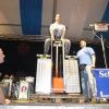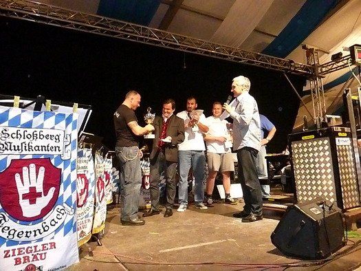Bei den Männern gab es zwei Gewichtsklassen und entsprechende Sieger an diesem langen Volksfestabend. Bei unter 100Kg Körpergewicht sprechen wir von „Normalgewicht“, darüber ist selbstredend, Schwergewicht. Der Ritzer Franz hat mittlerweile die Königsklasse erreicht und zeigte sich seiner Favoritenrolle gerecht. In einem an Spannung nicht zu überbietendem Stechen mit Vehbi Davul, der mit 33,54 Zentimetern los legte, folgte Franz Ritzer mit 74,50, Davul legte nach, 75,80 cm. Ohne Bandagen, aber mit einer gehörigen Portion Frechheit, zeigte der Lokalmatador, wo bei ihm der Hammer hängt, 78,77 cm bei einem Gewicht von sage und schreibe 279 kg.