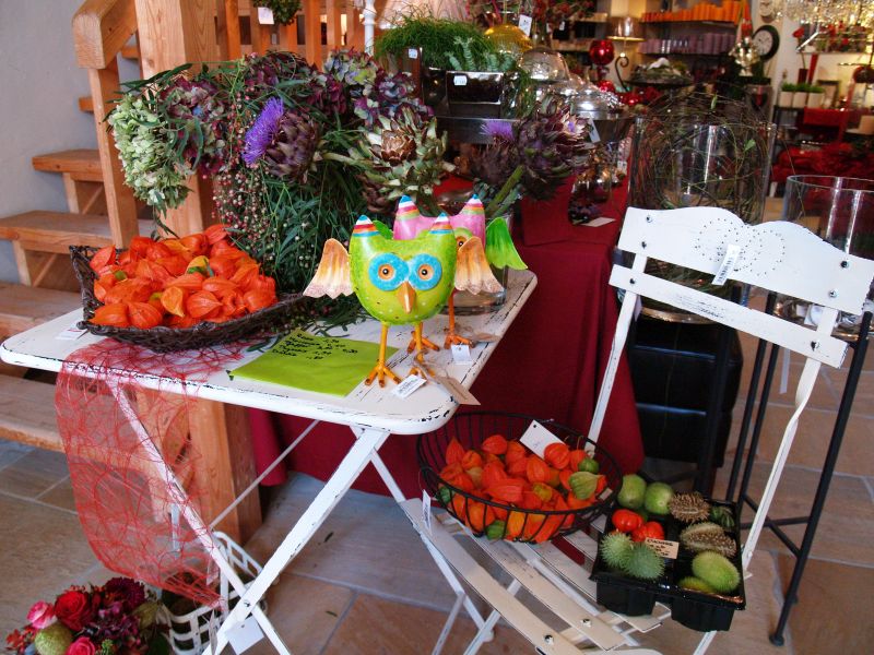 Im Laden selbst und auf dem großzügigen Freigelände können sich die Besucher über neue, exklusive Trends aus den Bereichen „Haus, Garten und Lifestyle“ informieren. Neben saisonalen Garten- und Pflanzenarrangements, Herbstfloristik und neuen Ideen für Drinnen und Draussen, ist auf jeden Fall das kleine Cafe auf dem Gelände einen Besuch wert. Bei dem momentanen schönen Wetter ein Genuss in jeder Hinsicht. Unter den herrlichen Gartendekorationen schmecken Kaffee und Kuchen umso besser. Die Herbstausstellung ist noch bis Sonntag geöffnet.