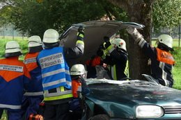 Jugendwart Benedikt Schmidt hatte dafür abwechslungsreiche Übungen eingeplant. Vom Löscheinsatz aufgrund eines abgestürzten Kleinflugzeuges über eine ausgelöste Brandmeldeanlage im Seniorenheim bis zur Personenrettung mit Drehleiter – der Tag hatte es in sich. Auch das Ausrücken zur Technischen Hilfeleistung wurde mit der Gruppe trainiert, die dabei eine verletzte Person aus ihrem Pkw befreien musste. „Die Einsatzszenarien, die wir heute abhalten, kennen alle schon aus der Ausbildung “, so Werner Fuchs, der am Ende auch mit dem Ergebnis sehr zufrieden war: „Die Gruppe hat die Übungen wirklich hervorragend absolviert.“