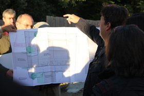 Derzeit entstehen die Außenwände. „Wir sind noch 2-3 Wochen im Zeitplan zurück“, erläuterte Architekt Udo Talke bei der Besichtigung. Dies liegt zum einen daran, dass der Abriss länger gedauert hat als ursprünglich geplant. „Die Fundamente waren massiver, als zunächst angenommen“, so Talke. Insgesamt aber soll der Rohbau noch in diesem Jahr stehen, so dass 2015 mit dem Innenausbau begonnen werden kann.