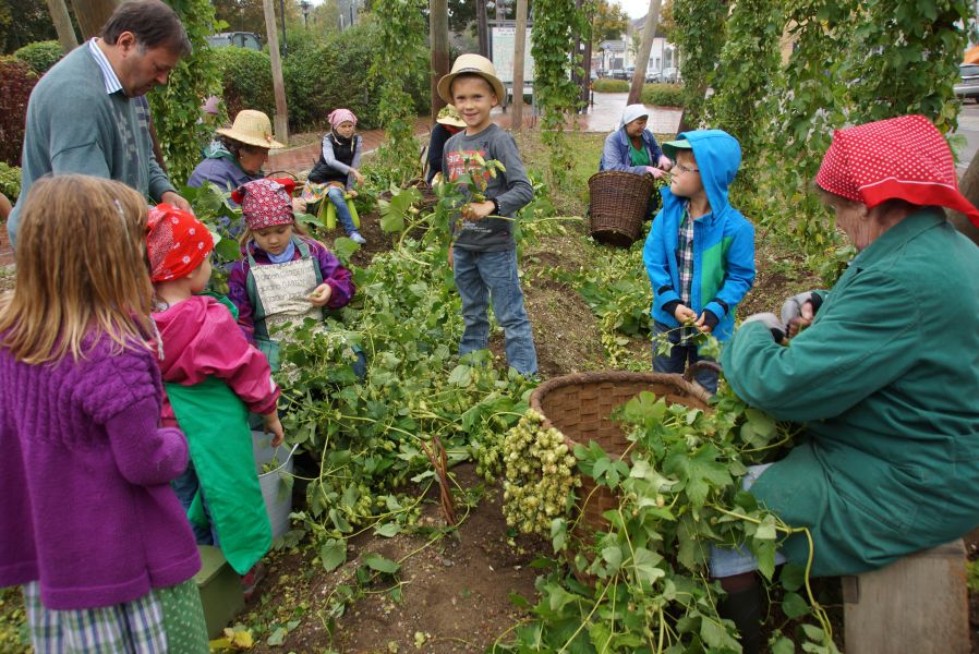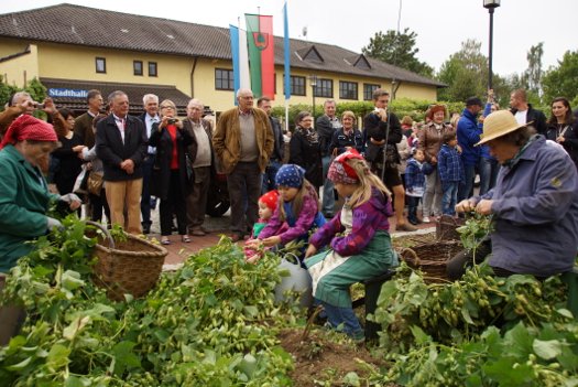 Als dritte und letzte Veranstaltung zu Ehren „60 Jahre Stadterhebung Mainburg“ wurde das „Hopfazupfafest“ gefeiert. Kaum zu übersehen ist der kleine Hopfengarten im Zentrum Mainburgs und wie für alle anderen, war es auch für ihn Zeit, gezupft zu werden.