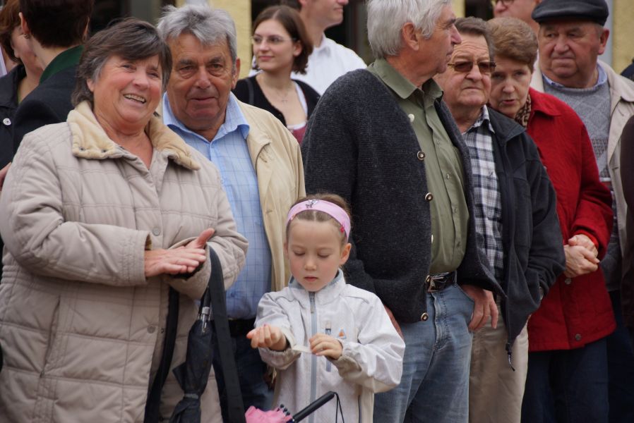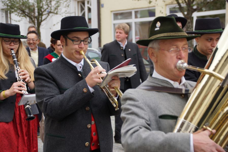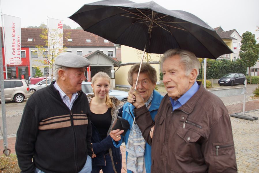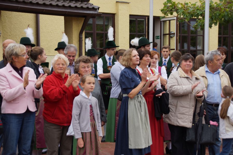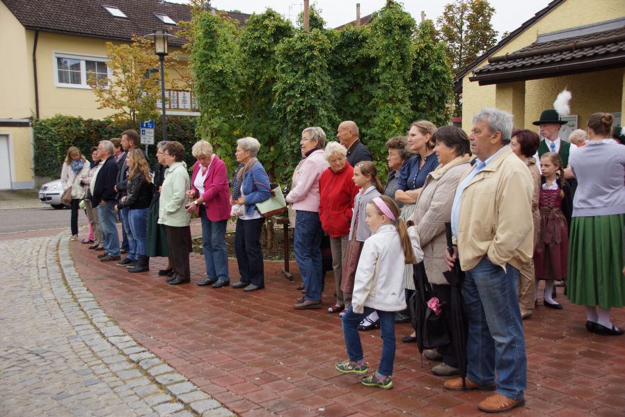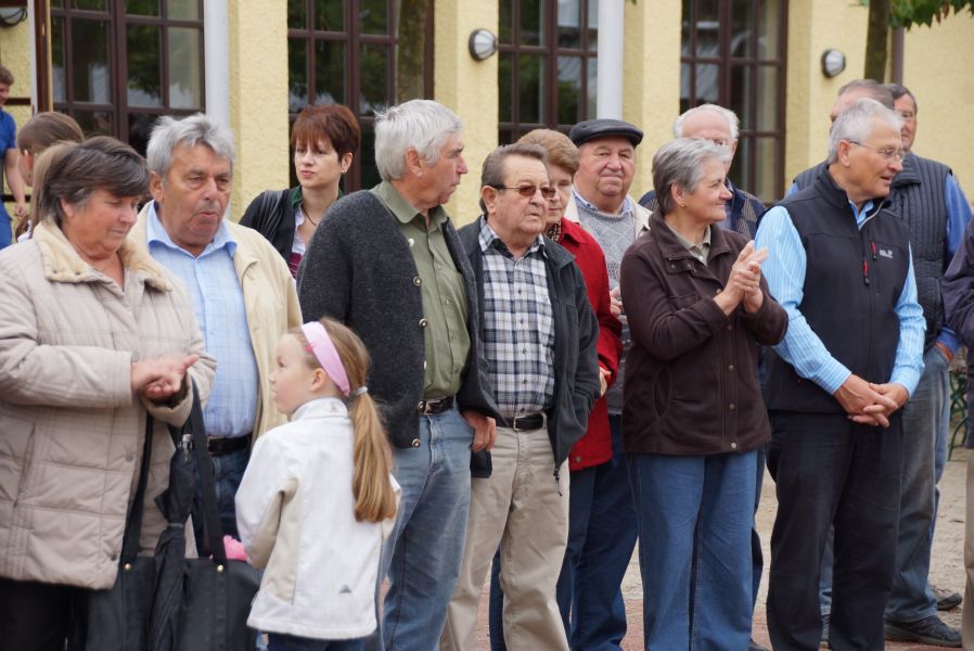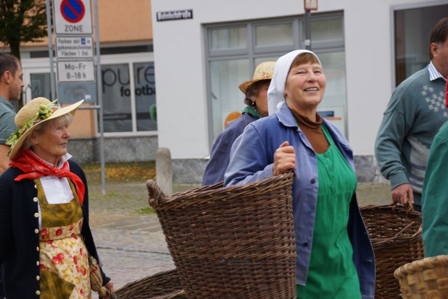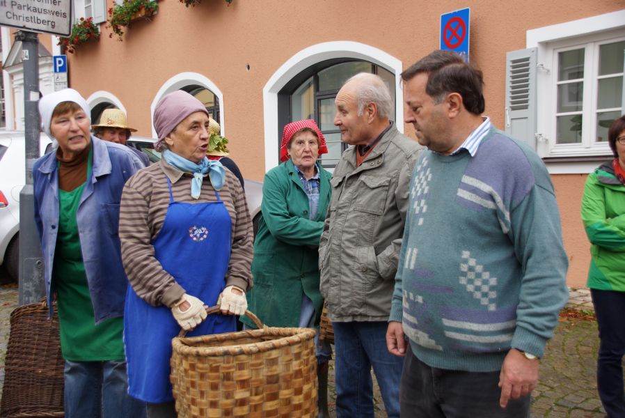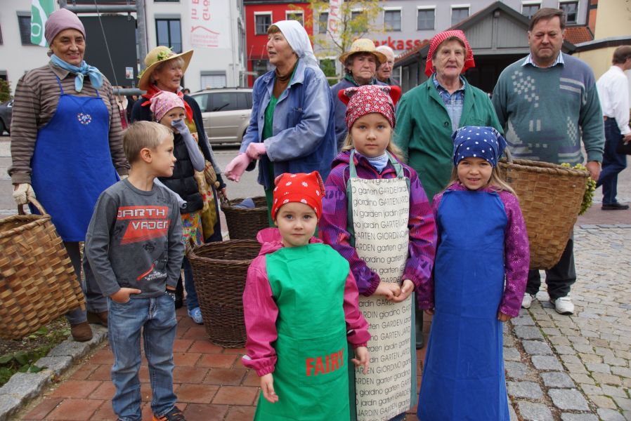 Auch ein Regenschauer konnte den Eifer der jungen und alten Zupferinnen nicht bremsen. Ungestört gingen sie ihrer Arbeit weiter nach, während die meisten Zuschauer in die trockene Stadthalle, bzw. unter das Vordach selbiger, flohen. Etwas später als geplant trat der Mainburger Trachtenverein mit einem „Schuahplattler“ und einigen Volkstänzen auf, und der Chor „Cantabile“ folgte mit einer Gesangseinlage.