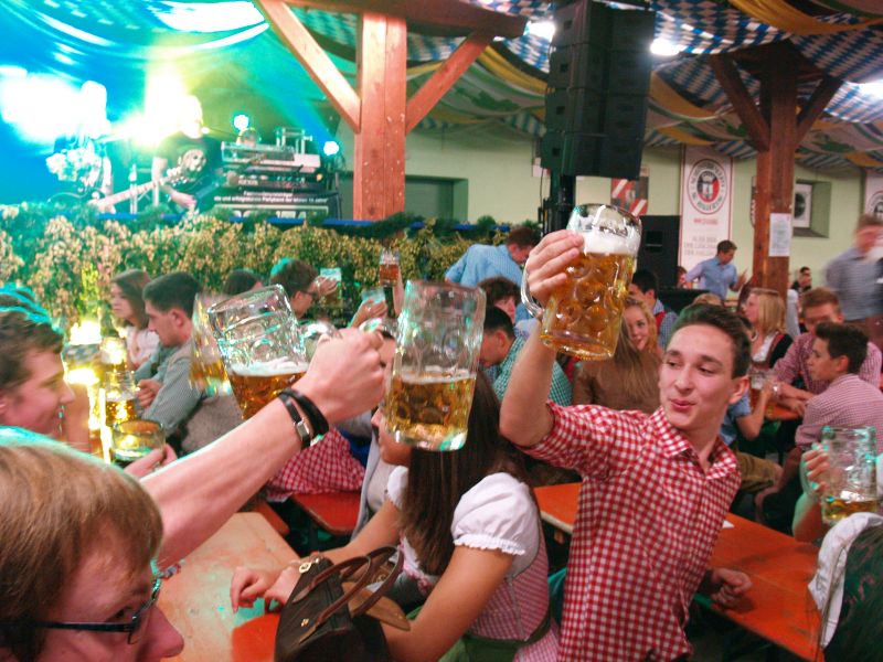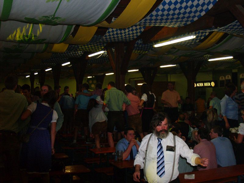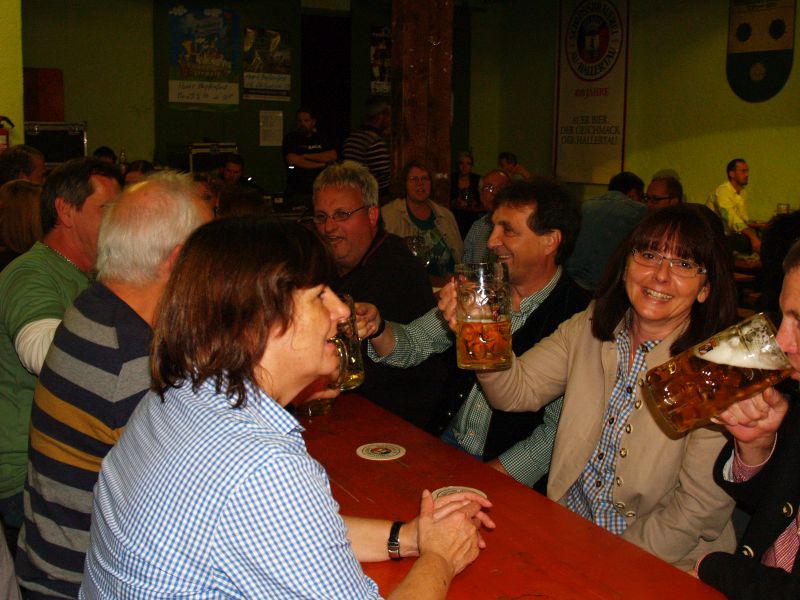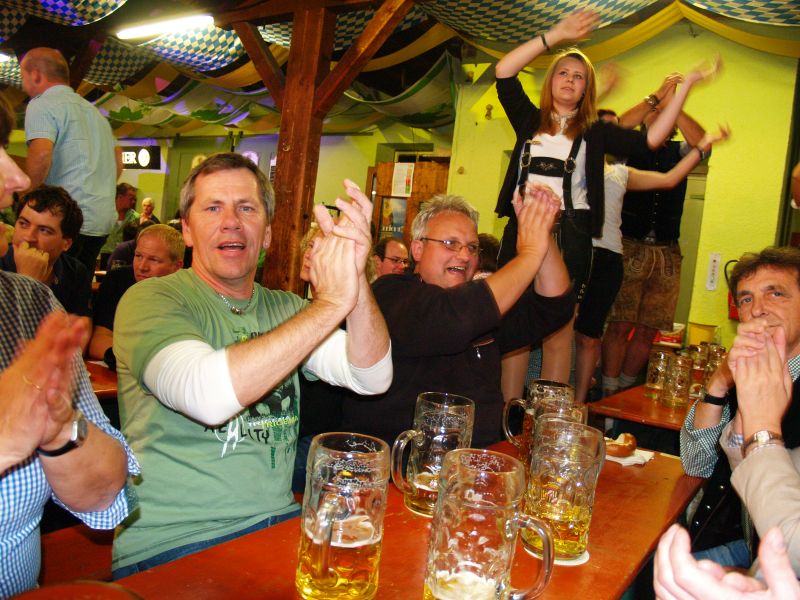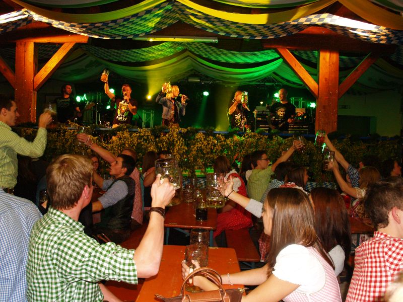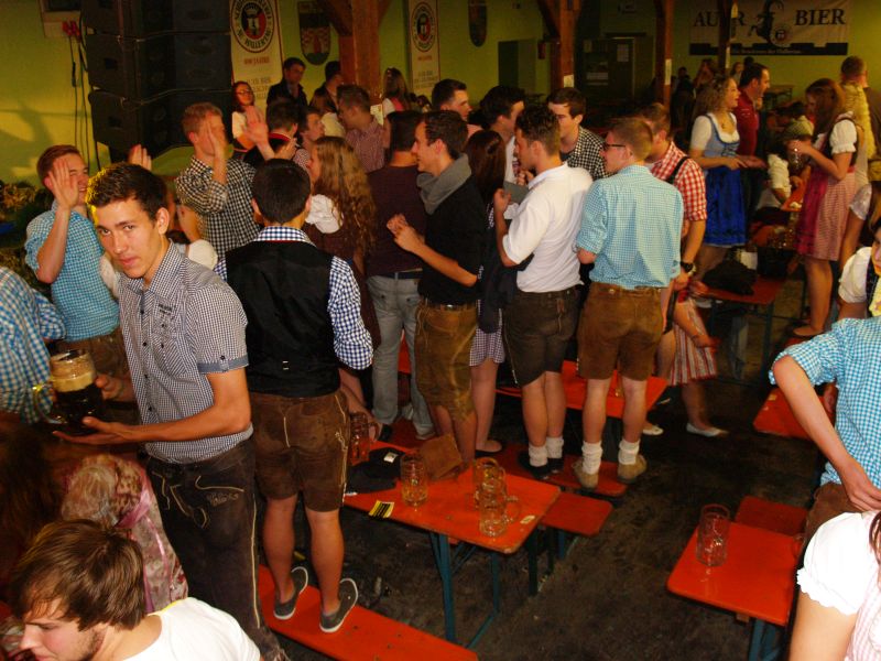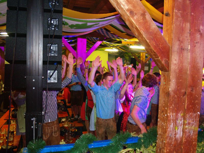 „Hier geht die Party ab“, hieß es am Freitagabend in der Hopfenhalle. Die mehrfach ausgezeichnete Partyband „Frontal“ heizte dem Publikum kräftig ein, da gab es für viele kein Halten mehr. Jung und Alt tanzte und feierte auf den Bierbänken. Da braucht man kein Oktoberfest, das kann man auch in Au haben.