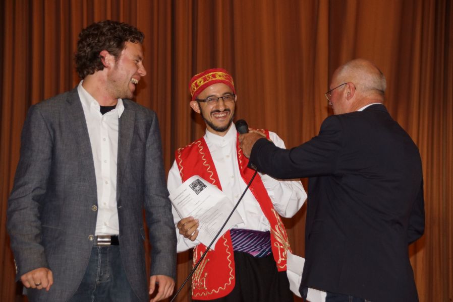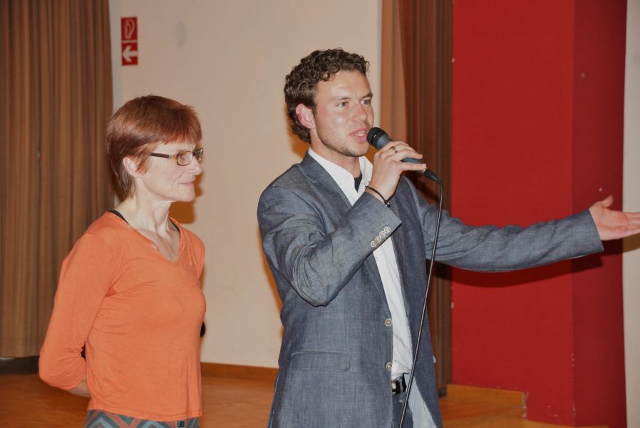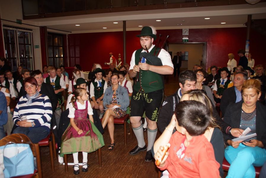 Roswitha Keil, die Integrationsbeauftrage des BRK und Stadtrat Andreas Blattner führten gemeinsam durch den bunt gestalteten Abend. Das Schöne an Mainburg ist, so Frau Keil: „Die Leute kommen zu uns! Wir können ganz bequem in der Stadthalle sitzen, sparen viele Flugstunden und bekommen einen Dudelsackspieler, Trommlerinnen, Türkische sowie Bayerische Tänze und Gesänge zu sehen“.