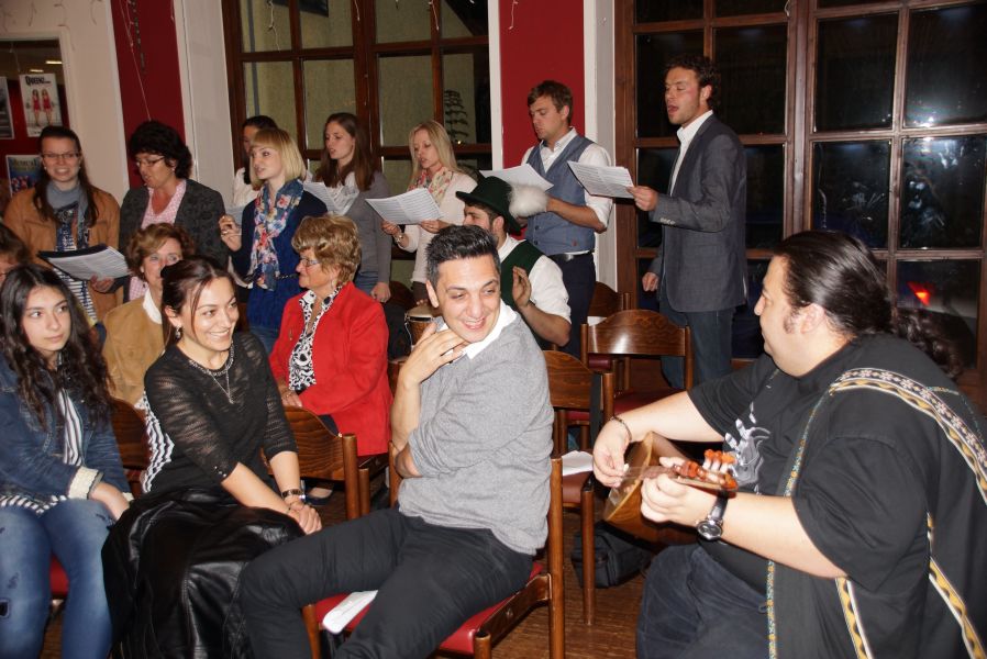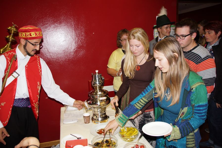 Yusuf Eröksüz spielte einige Stücke auf seiner Saz, die Jugendgruppe des Mainburger Trachtenvereins erfreute die Zuschauer mit Volkstänzen und Schuahplattleln, und die „Schamaninen“ , bestehend aus zehn Trommlerinnen, trugen ebenfalls zum Gelingen bei. Zum Abschluß wurde noch gemeinsam das "Holledauer Liad" gesungen und danach ging es zum gemütlichen Teil über. Die Stadt Mainburg stiftete Getränke, Kuchen und Häppchen. Außerdem gab es deftige und süße türkische Leckereinen, was die Stimmung des sehr gelungen Abends noch zusätzlich hob.