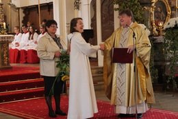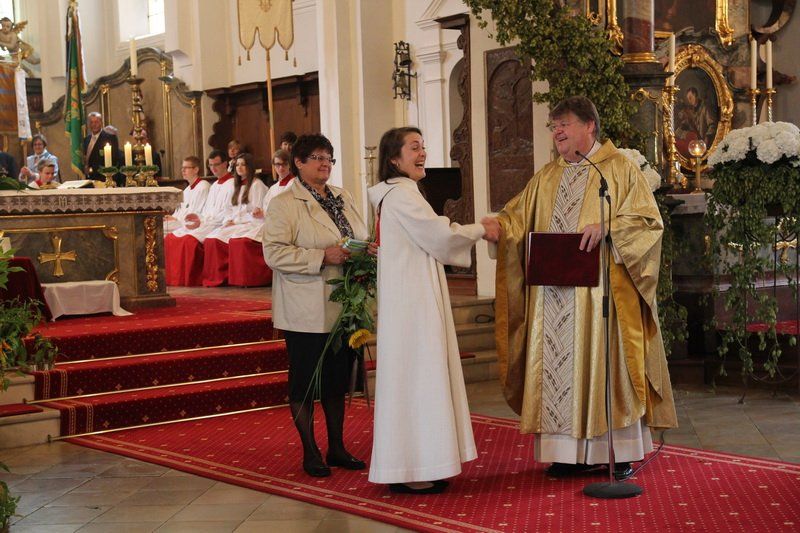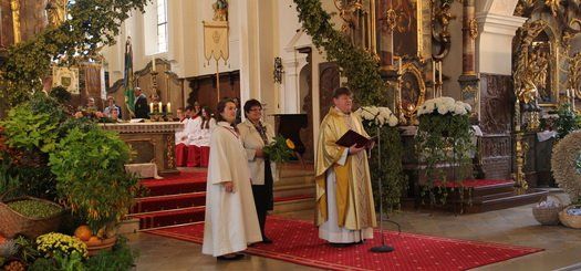 Doch es gab vom Pfarrer eben nicht nur mahnende Worte im Hinblick auf die Natur, ein es gab zum Erntedankfest zusätzlich noch etwas zu feiern. Susanna Juretschka hatte kürzlich ihre Prüfung bestanden und ist nun Gemeindereferentin. „Ich darf dir dazu recht herzlich gratulieren „, so Pfarrer Braun, als er in das strahlende Gesicht von Juretschka blickte. „Vor zwei Jahren bin ich als Gemeindeassistentin in die Hallertau gekommen. Es war eine wunderschöne Zeit und deswegen bleibe ich auch“, so Juretschka. Beifall erklang in der Kirche.
