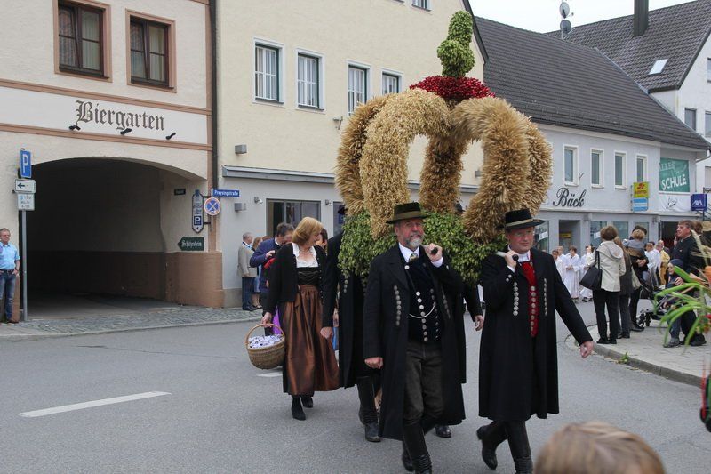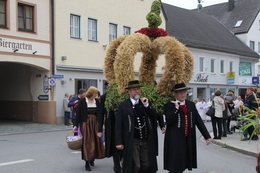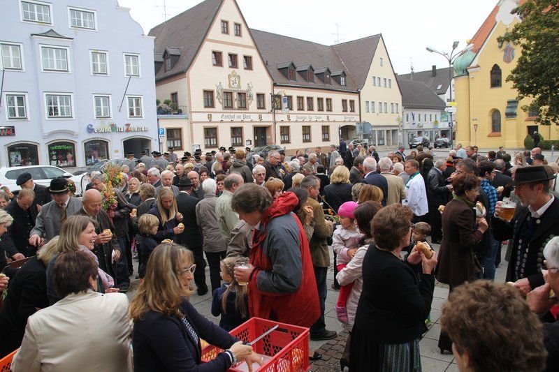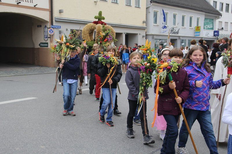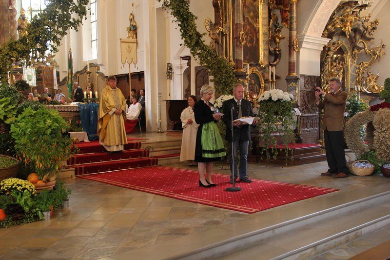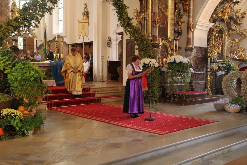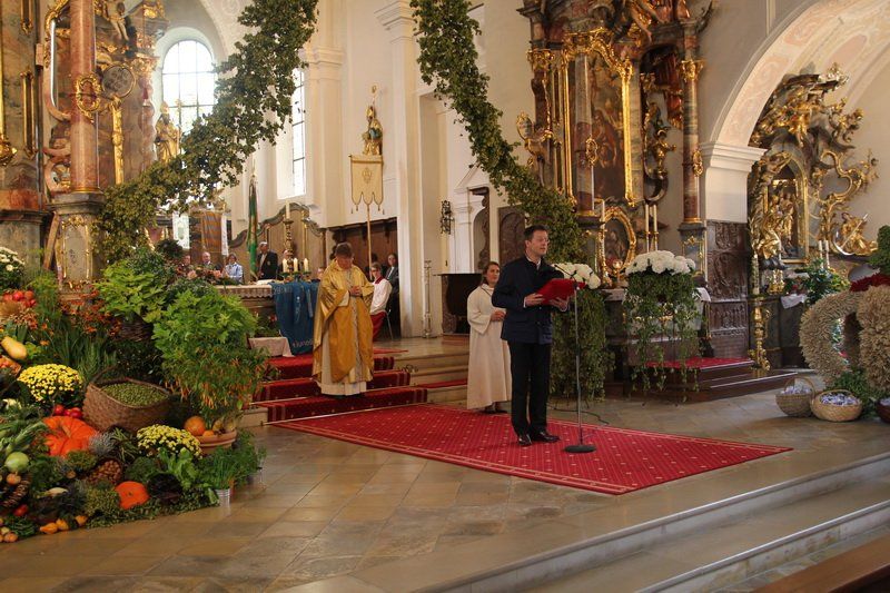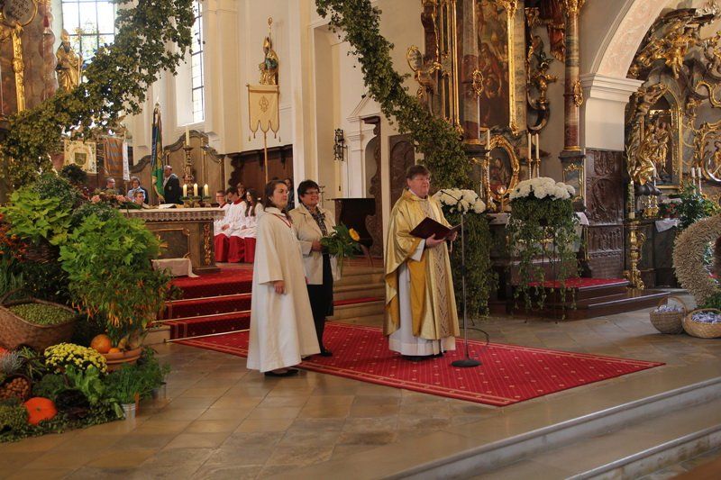 Wie sehr Wolnzach für sie zur Heimat geworden ist, das konnte man in der Gabenprozession sehen. Einen Hopfenkranz mit Blumen aus ihrer Heimat im bayerischen Wald trug sie zum Altar. Auch viele andere Wolnzacher hatten in diesem Jahr Grund danke zu sagen. Johannes Hartleitner für das Theaterbrettl und auch Gerlinde Reinsch für einen tollen historischen Festzug. So wurde das diesjährige Erntedankfest nicht dafür genutzt Gott für die Gaben zu danken, sondern auch all jenen, die das Jubiläum in Wolnzach zu etwas ganz Besonderem werden ließen.
