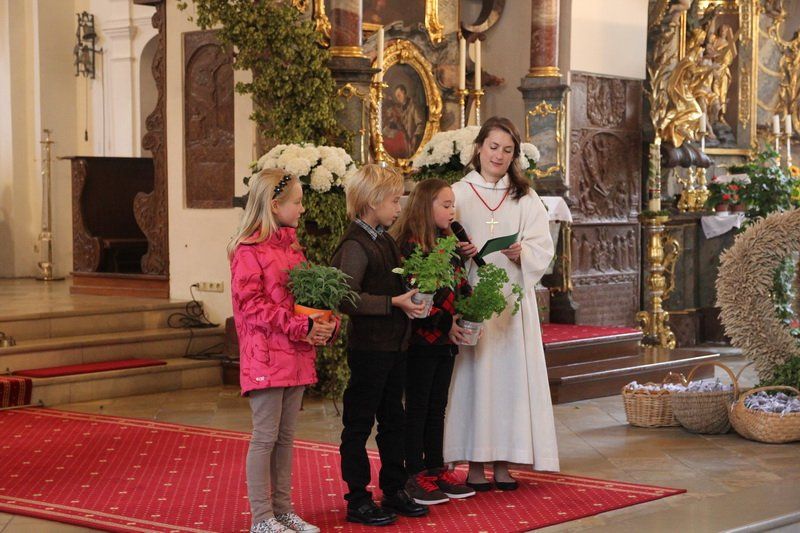 Die Ernte ist eingebracht – jedenfalls zum großen Teil. Nur noch der Mais steht auf den Feldern, so ist es auch Zeit Gott für die Gaben danken, die auch in diesem Jahr wieder so zahlreich auf den Feldern oder in den Gärten gewachsen sind. Ein besonders Augenmerk richtete Pfarrer Johann Braun dieses Mal auf die Kräuter, die oftmals unerkannt am Wegrand oder auf Wiesen wachsen.