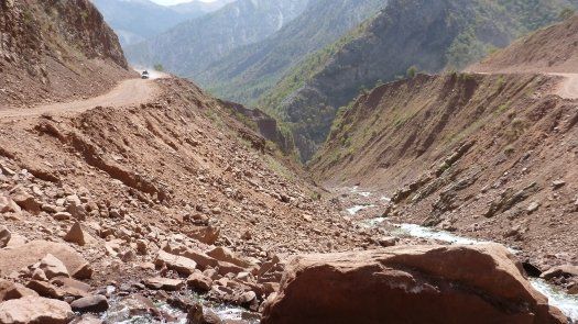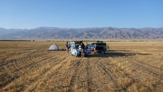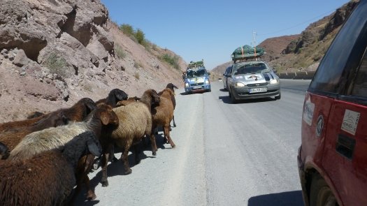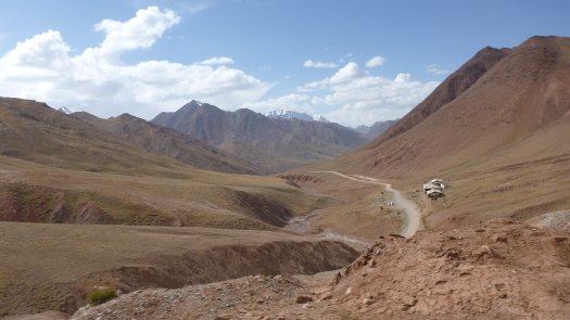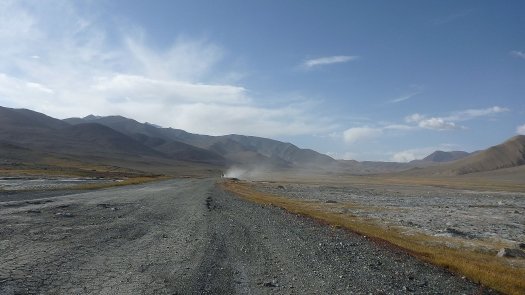 Nicht nur nach großen und kleinen Reparaturen kam man ganz schön ins Schwitzen, besonders natürlich in den Wüstengebieten wo die Luft nach Staub schmeckt und die Weite grenzenlos erscheint. "Nachts war es mit etwa 25 Grad nicht so heiß, doch tagsüber so um die 40 Grad." Am gut 1500 Kilometer langen Pamir-Highway allerdings, der Verbindung von Kirgisien und Tadschikistan, war die Kälte gnadenlos zu spüren. Drei Grad in der Nacht habe es gehabt.