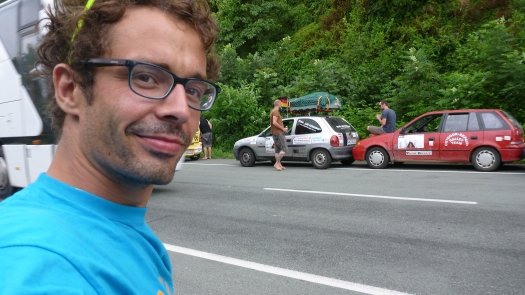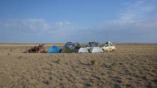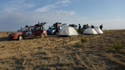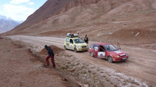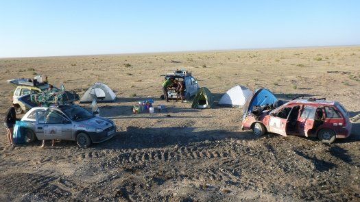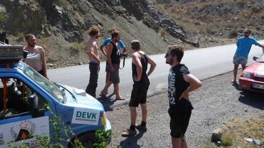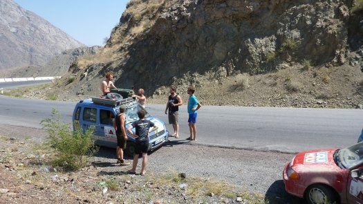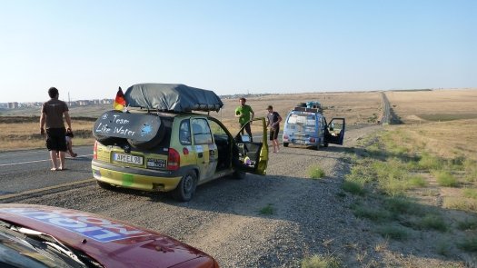 An Kasachstan erinnert er sich auch deshalb gut, weil " wir nachts und ziemlich auf der Hälfte der Strecke mitten in der Staubwüste einen Achsbruch gehabt haben." Der zog 14 Stunden unfreiwilligen Aufenthalt nach sich. "Die Straßen sind übersät mit Schlaglöchern, dann wieder fehlen ganze Teile von der Straße - für unsere Verhältnisse unvorstellbar." Johannes, der Umwelttechnik-Ingenieur, improvisiert mit Spanngurten und hält damit die Achse an der Karosse fest. "Das hat gehalten bis zum Ende der Rally."
