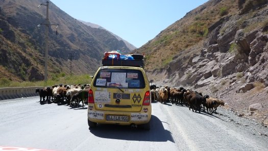 In Russland haben viele Raststellen auch regelrechte Reparaturrampen, weil es dort selbstverständlich ist, dass man sich Schäden am Fahrzeug selbst repariert." Ein wenig sollte man sich schon auskennen mit der Automechanik, denn es gibt auf der Strecke keinerlei Service von den Veranstaltern. Jeder Teilnehmer der Rally ist mehr oder weniger auf sich alleine gestellt oder die sich zufällig begegnenden Teams helfen sich gegenseitig aus. Dazu müsse jedoch das "Timing" stimmen. Das deutsch-schweizer Duo hatte sogar drei Ersatzreifen eingepackt, sie jedoch zu ihrer Verwunderung nicht gebraucht. Vielleicht lag es ja auch daran, dass die Fahrzeuglenker dortzulande mit nicht mehr als knapp über 30 Stundenkilometer fahren, auch weil das Vieh überall und unberechenbar umherläuft. "Die Viecher machen auf den Straßen was ihnen gefällt."
