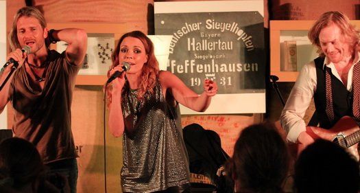 C.B. Green (links), Anna Sahlene (Mitte) und Jimmy Wahlsteen (rechts) ernteten tosenden Applaus im Deutschen Hopfenmuseum.