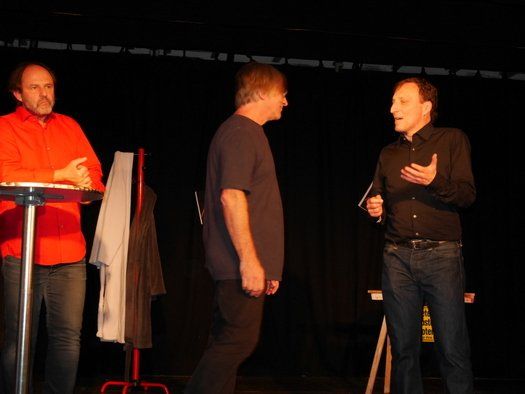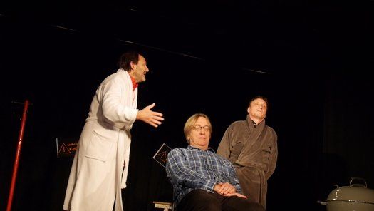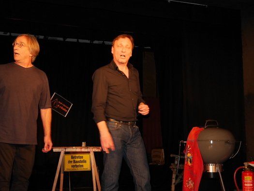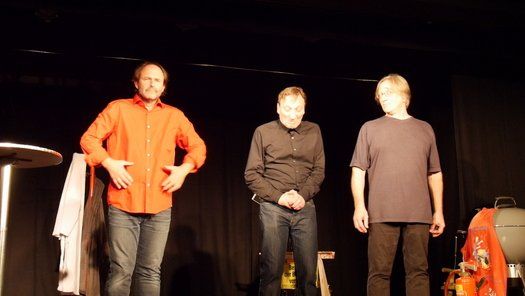 Sie merken, die eigene Erfahrung spielt eine große Rolle im Kabarett der 3/5 Stachelbären, wer sich betroffen fühlt, ist auch gemeint. Wer Starkbierkabarett, oder Singspiel erwartet hat, wurde enttäuscht, zwar waren einige Solonummern aus dem letzten Frühjahrsprogramm geliehen, doch das „Derblecken“ blieb aus. Nachdenkliches, und der „normale“ Umgang, mit dem eigentlichen Irrsinn, in unserer täglichen Welt, bestimmt den Inhalt des Bühnengeschehens.