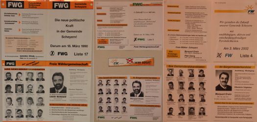 Der Erfolg der FW in Scheyern ist nach den Gemeinderats- und Bürgermeisterwahlen im Frühjahr diesen Jahres nicht wegzudiskutieren. Gerade einmal 25 Mitglieder zählt der Ortsverein, 7 davon gestalten die Gemeindepolitik aktiv als Bürgermeister oder Gemeinderat mit. Bei den Kommunalwahlen 1990 waren es mit Erwin Marquardt, Georg Pfab und Michael Baumeister immerhin auf Anhieb auch gleich 3 Räte, die den Einzug in das Sitzungszimmer des Scheyrer Rathauses schafften.