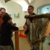 Nicht nur Schmuck hat aber die Ausstellung an diesem Wochenende zu bieten, eine weitere Leidenschaft der Frauen ist nämlich das Dekorieren. So präsentiert Ingrid Kreidenweis auch Bilder und Keramikfiguren. Sie hat sich seit Jahren der Acrylmalerei verschrieben und sich im Rahmen der Ausstellung unter anderem mit dem besonderen Farbenspiel der Mohnblumen auseinandergesetzt. Ein weiteres Highlight im Rathauskeller bietet sicherlich auch das handgeschmiedete Korsett von Hans Schmid. „Das Korsett kann man sogar tragen, es ist innen mit feinem Leder gefüttert“, so der Künstler.