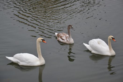 Immer wenn der Herbst in Rohrbach einzieht, kommt auch ein Schwanen-Paar in den Ort und lässt sich am Flutgraben entlang der Bahnlinie nieder. In diesem Jahr kamen sie aber nicht allein, sondern brachten auch ihr inzwischen recht erwachsenes Küken mit, das sie aber immer schön in die Mitte nahmen – und wehe, es wollte jemand zu nahe kommen, dann wird er weg-gezischt.