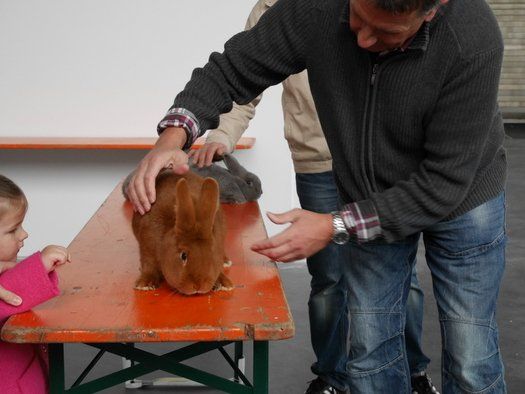 Lebende Tiere als Hobby, man kann darüber denken, was man will, die ausgestellten Schönheiten einmal aus nächster Nähe zu erleben, hat etwas in unserer schnellen digitalen Zeit. Ein Streichelgehege mit Jungtieren ist natürlich der Renner bei den Kindern und die Erwachsenen nutzen die Gelegenheit, ihr Wissen über die Langohren kundzutun. Schnuppernde Hasennasen zum Beispiel haben durchaus therapeutische Wirkung. Hase oder Kaninchen, gut züchten lässt sich nur die Unterrasse, gemeinsam ist ihnen ihre Bedeutung.