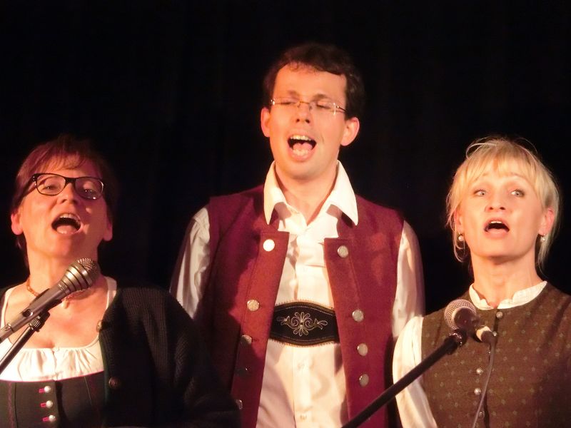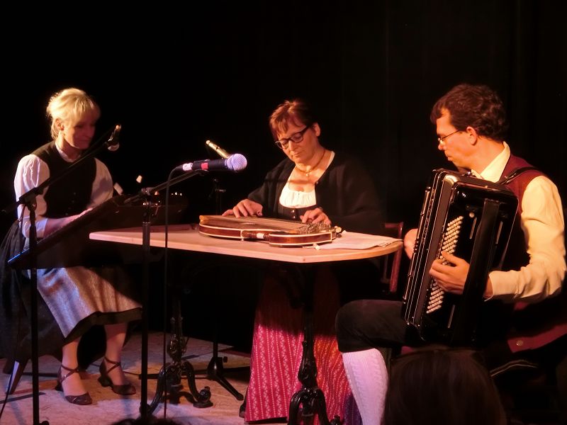 Dann wieder etwas vollkommen anderes: Bayrische Volksmusik! " D`Reider Weiber " sind 2 Schwestern aus einem Hof in der Hallertau, nach dem sie sich auch benennen, und die schon als Kinder zusammen musizierten. Mit Zither oder Geige spielt Rita Brunner, die mittlerweile auch Musikpädagogin ist und Irene Bock am Hackbrett, zudem haben sie sich mit Andy Wenger männliche Verstärkung an der Quetschn geholt. Sie spielen traditionelle Volksmusik, gerne auch aus dem Bayrischen Wald bis hinein in den Balkan. Auch sie ernteten viel Applaus.