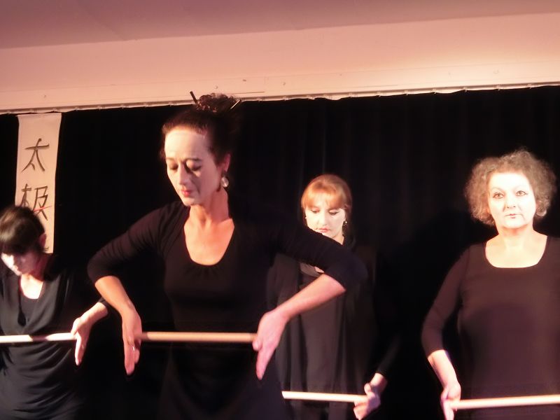 Nochmals Kontrastprogramm: "Performance Japanese", eine Truppe um Tanzlehrerin Elli Bachmeier aus der Freisinger Region, bot eine Tanzvorstellung zwischen Qi Gong und Tanz, in der Tradition eines Butoh Tanzes.