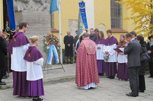 Nach der 10.30 Uhr Messe am Sonntag legte der Krieger- und Kameradenverein im Gedenken an die Gefallenen der Weltkriege, aber auch der laufenden kriegerischen Auseinandersetzungen einen Kranz nieder.