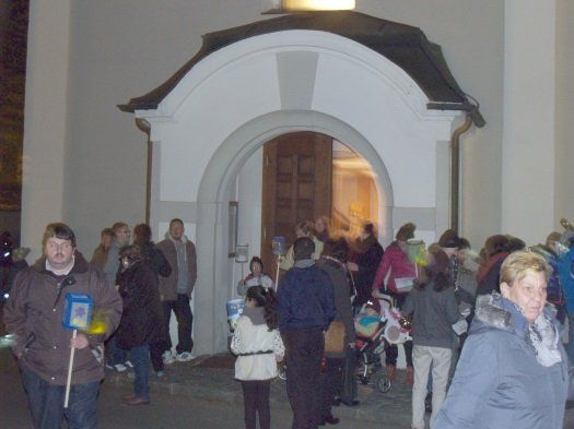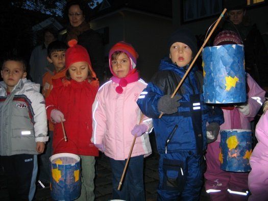 In Au begann das Martinsfest des Kindergarten Maria de la Paz ganz traditionell mit einer Kindermesse in der Kirche St. Vitus. Bis auf den letzten Platz waren die Bänke gefüllt und die Kinder wurden mit einem kleinen Martinsspiel in den Gottesdienst mit einbezogen. Anschließend ging es, voran mit Sankt Martin hoch zu Ross, in einem langen Laternenzug in Richtung Kindergarten Maria de la Paz.