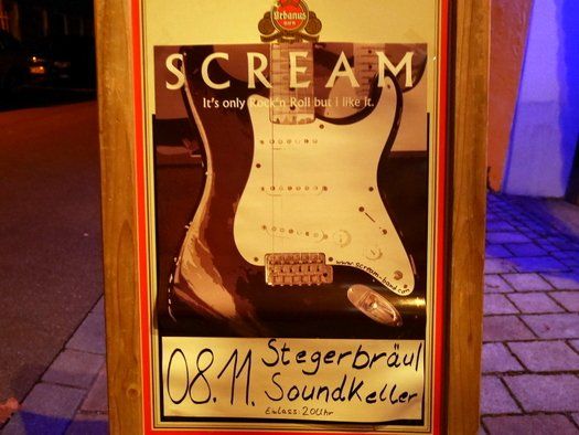 Die Charts rauf und runter, von den alten Rock´n Rollern über Hardrock zum Verträumten, SCREAM hat viel Neues einstudiert und rockte den Stegerkeller. Musikfans aus bestimmt vier Generationen tummelten sich im voll besetzten Gewölbekeller.