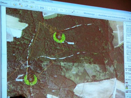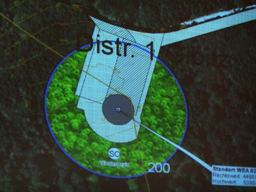 Frau Doris Marowski, Landschaftsarchitektin vom Planungsbüro KomPlan, stellte deshalb den Anwesenden die neuesten Pläne vor. Auch der Auftraggeber und Bauherr der beiden Windräder, Herr Eisenknappl, war anwesend.