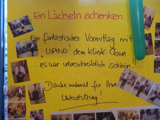 Der Adressat der doch erstaunlichen Summe für so ein kleines Fest, immerhin 400,- Euro, das waren mal 800 Mark, waren die KlinikClowns. Niemand der Kinder konnte sich jetzt genau vorstellen was ein Clown so in einer Klinik macht, aber denen konnte geholfen werde.