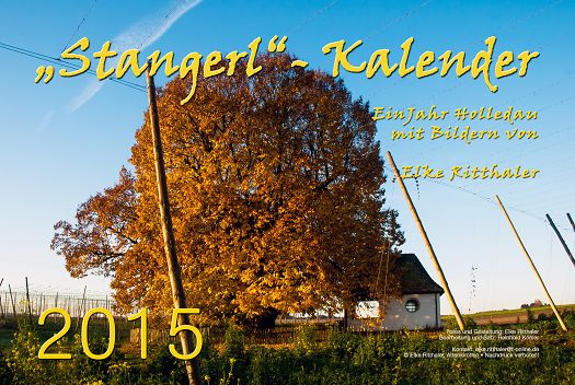 Die erfreulich positiven Reaktionen auf ihren ersten „Stangerl“- Fotokalender 2014 haben die Hobby-Fotografin Elke Ritthaler aus Attenkirchen dazu bewogen, für 2015 eine neue Edition mit Motiven aus ihrer heimischen Umgebung herauszugeben. Das Ergebnis: zwölf dekorative DINA3 Kalenderblätter mit überraschenden, bisweilen sogar ungewöhnlichen An- und Einblicken in die vom Hopfen so einzigartig geprägte Kulturlandschaft Hallertau.