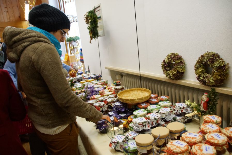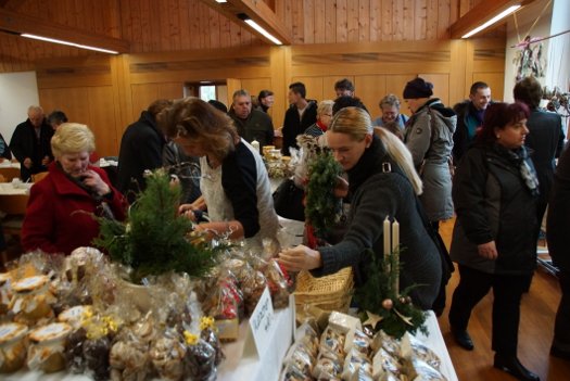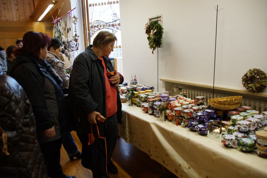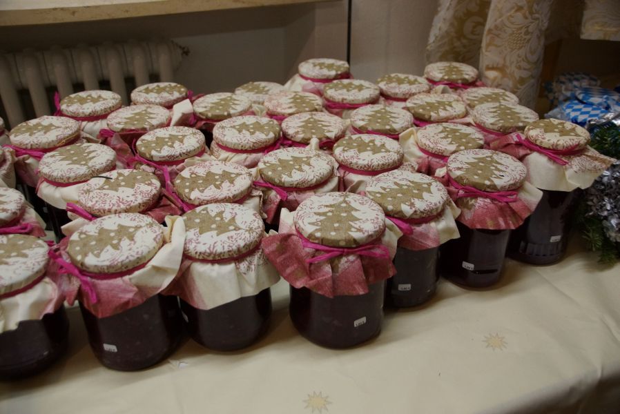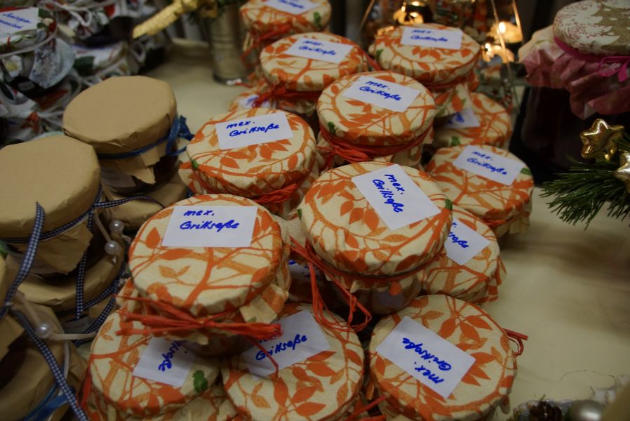 Aber auch die vielen verschiedenen Marmeladen und Gelees fanden reißenden Absatz. Außerdem gab es Adventsgestecke und –kränze, allerlei Grill- und Brotzeitsoßen, eingelegten Käse, süß-saure Kürbis-, Tomaten- und Zucchinispezialitäten sowie Hausmacher Senf, Holundersirup, Punsch-Essenz, Eier- und Schoko-Wiksky-Likör und vieles, vieles mehr.