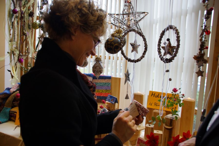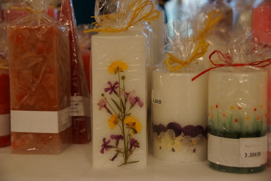 Schon im Eingangsbereich gab es einiges zu sehen. Die Behindertenwerkstätten Wambach stellten auf eigene Regie selbstgebastelte Kerzen und Weihnachtskarten aus. Kaum zu glauben, mit welch einfachen Mitteln solch schöne Ergebnisse möglich sind.