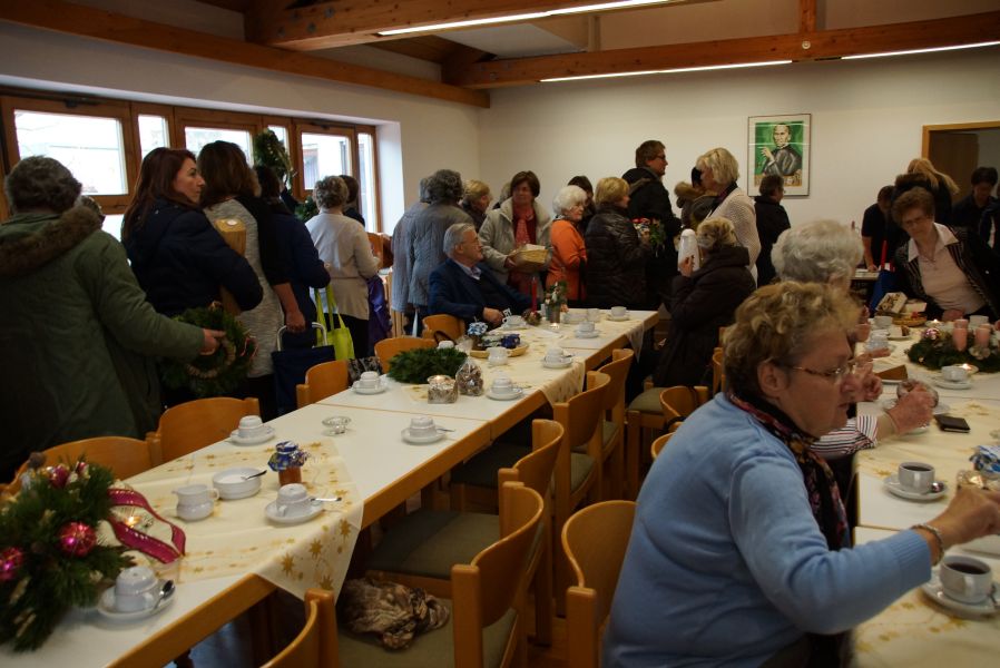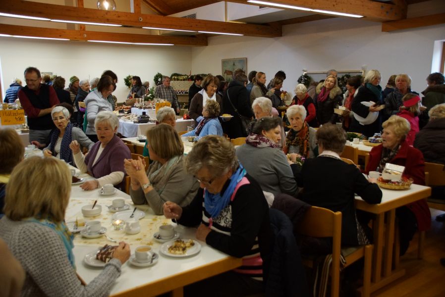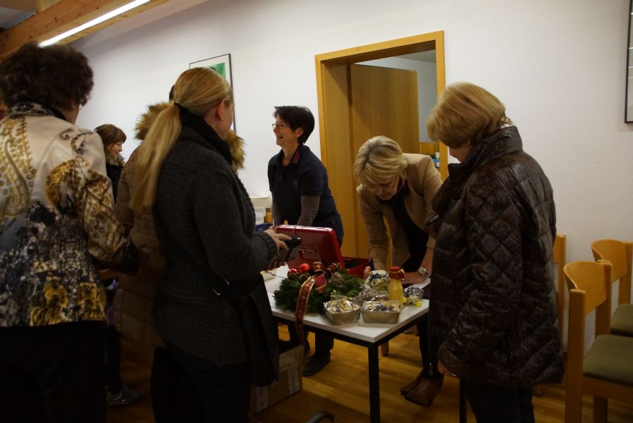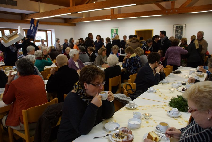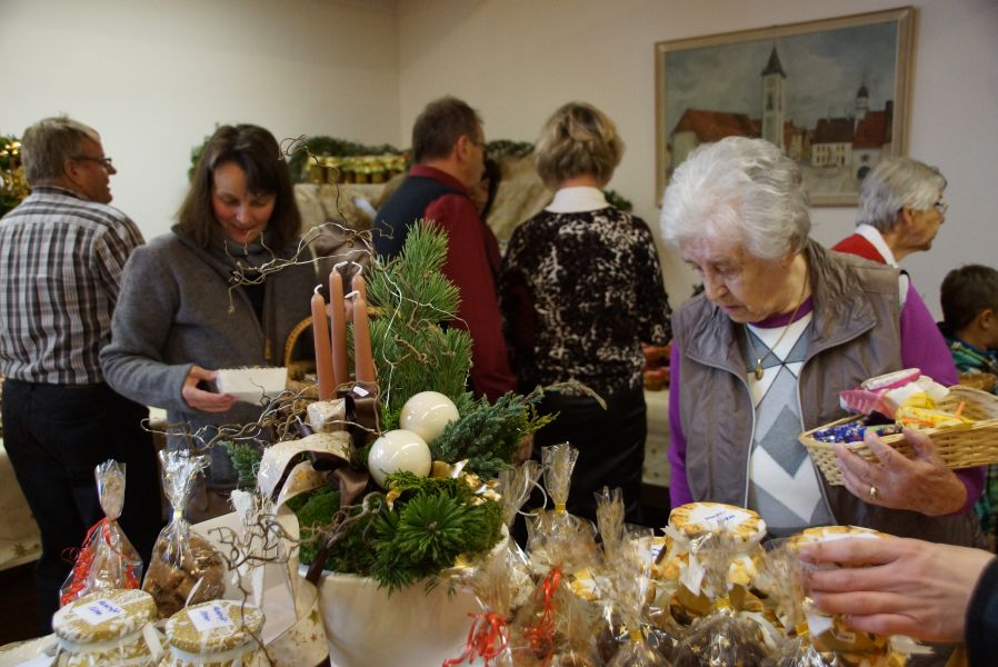 Auf die Minute pünktlich wurde der „Verkaufsraum“ von der 1. Vorsitzenden des Frauenbundes, Katharina Stanglmeier, geöffnet. Eilends machten sich die Damen und einige Herren auf die Suche nach ihren Lieblingsprodukten, zu denen vor allem die selbstgebackenen Plätzchen und das selbsteingemachte Blaukraut gehörte.